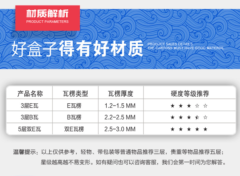 | Specifications and models | Outer diameter size; three-layer b tile; t1 (150x150x50mm),Outer diameter size; three-layer b tile; t2 (200x140x40mm),Outer diameter size; three-layer b tile; t3 (270x165x50mm),Outer diameter size; three-layer b tile; t4 (250x200x70mm),Outer diameter size; three-layer b tile; t5 (300x215x50mm),Outer diameter size; three-layer b tile; t6 (310x260x60mm),Outer diameter size; three-layer b tile; t7 (400x280x60mm),Outer diameter size; three-layer b tile; t8 (360x300x60mm),Outer diameter size; three-layer b tile; t9 (420x330x80mm),Outer diameter size; three-layer b tile; f15 (320x230x70mm),Outer diameter size; three-layer b tile; f19 (300mmx250mmx80mm),Outer diameter size; three-layer b tile; f31 (300mmx200mmx80mm),Outer diameter size; three-layer b tile; f4 (31*22*10cm) [3-layer b tile],Outer diameter size; three-layer b tile; f16 (38*28*8cm) [3-layer b tile],Outer diameter size; three-layer b tile; f21 (27*21*6cm) [3-layer b tile],Outer diameter size; three-layer b tile; f25 (27*18*7cm) [3-layer b tile],Outer diameter size; three-layer b tile; f29 (44.5*30.5*8cm) [3-layer b tile],Outer diameter size; three-layer b tile; f35 (45*35*10cm) [3-layer b tile],Outer diameter size; three-layer b tile; f13 (32*26*4cm) [3-layer b tile] 40 pcs/pack,Outer diameter size; three-layer b tile; s01 (15*10*4cm),Outer diameter size; five-layer ee tile; t1 (150x150x50mm),Outer diameter size; five-layer ee tile; t2 (200x140x40mm),Outer diameter size; five-layer ee tile; t3 (270x165x50mm),Outer diameter size; five-layer ee tile; t4 (250x200x70mm),Outer diameter size; five-layer ee tile; t5 (300x215x50mm),Outer diameter size; five-layer ee tile; t6 (310x260x60mm),Outer diameter size; five-layer ee tile; t7 (400x280x60mm),Outer diameter size; five-layer ee tile; t8 (360x300x60mm),Outer diameter size; five-layer ee tile; t9 (420x330x80mm),Outer diameter size; cigarette airplane box three-layer super hard special price; w1 fine tianxiang tianye lotus type 2 pack 310*120*70mm,Outer diameter size; three-layer super-hard cigarette airplane box special price; w2 thick size 2 pack (310*190*55mm),Outer diameter size; three-layer super-hard cigarette airplane box special price; w3 double medium-sized pure 2-pack (360*105*70mm),Outer diameter size; three-layer super-hard cigarette airplane box special price; w3 chinese double medium size 2 pack (360*105*70mm),Outer diameter size; three-layer super-hard cigarette airplane box special price; w4 thick tianye/hetianxia 2 packs (315*215*65m,Outer diameter size; cigarette airplane box three-layer super hard special price; w4 thick canyon tenderness 2 pack (315*215*65mm),Outer diameter size; three-layer super-hard cigarette airplane box at a special price; w5 thick side-packed 2-pack (305*105*95mm),Outer diameter size; three-layer super-hard cigarette airplane box at a special price; w5 soft and hard with 2 pieces on the middle side (305*105*95mm),Outer diameter size; cigarette airplane box three-layer super-hard special price; w5 tianxia minglou 4-pack (305*105*95mm),Outer diameter size; three-layer super-hard cigarette airplane box special price; w6 double medium size 4 pack (360*200*65mm),Outer diameter size; three-layer super-hard cigarette airplane box special price; w7 thick and short loto night west lake 2 pack 295*170*50mm,Outer diameter size; cigarette airplane box three-layer super-hard special price; w8 qijing/louwailou 2-pack (290*185*50mm),Outer diameter size; three-layer super-hard cigarette airplane box at a special price; w9 gold medium size 2 pack (250*185*50mm),Outer diameter size; cigarette airplane box three-layer super hard special price; w9 fine huishang 2 pack (250*185*50mm),Outer diameter size; cigarette airplane box three-layer super hard special price; w13 pu xi xuan he category 2 pack 310*115*60mm,Outer diameter size; cigarette airplane box three layers super hard; w1 fine tianxiang tianye lotus type 2 pack 310*120*70mm,Outer diameter size; cigarette airplane box three layers super hard; w2 thick branch 2 pack (310*190*55mm),Outer diameter size; cigarette airplane box three layers super hard; w3 double medium pure 2 pack (360*105*70mm),Outer diameter size; cigarette airplane box three layers super hard; w3 chinese double medium size 2 pack (360*105*70mm),Outer diameter size; cigarette airplane box three layers super hard; w4 thick tianye/hetianxia 2 pack (315*215*65m,Outer diameter size; cigarette airplane box three layers super hard; w4 thick canyon tenderness 2 pack (315*215*65mm),Outer diameter size; cigarette airplane box three layers super hard; w5 thick side placed 2 packs (305*105*95mm),Outer diameter size; cigarette airplane box three layers super hard; w5 soft and hard middle side placed 2 packs (305*105*95mm),Outer diameter size; cigarette airplane box three layers super hard; w5 tianxia minglou 4 pack (305*105*95mm),Outer diameter size; cigarette airplane box three layers super hard; w6 double medium size 4 pack (360*200*65mm),Outer diameter size; cigarette airplane box three layers super hard; w7 thick short branch loto night west lake 2 pack 295*170*50mm,Outer diameter size; cigarette airplane box three layers super hard; w8 qijing/louwailou 2 pack (290*185*50mm),Outer diameter size; cigarette airplane box three layers super hard; w9 gold medium size 2 pack (250*185*50mm),Outer diameter size; cigarette airplane box three layers super hard; w9 fine huishang 2 pack (250*185*50mm),Outer diameter size; cigarette airplane box three layers super hard; w10 medium-sized tianxiang wide and narrow type 2 pieces (370*120*75mm,Outer diameter size; cigarette airplane box three layers super hard; w10 chinese gold medium size 2 pieces placed horizontally (370*120*75mm,Outer diameter size; cigarette airplane box three layers super hard; w11 xinyunlong/xuanhemen 4 pack (310*230*70m,Outer diameter size; cigarette airplane box three layers super hard; w11 fine lotus/tianxiang 4 pack (310*230*70mm,Outer diameter size; cigarette airp
