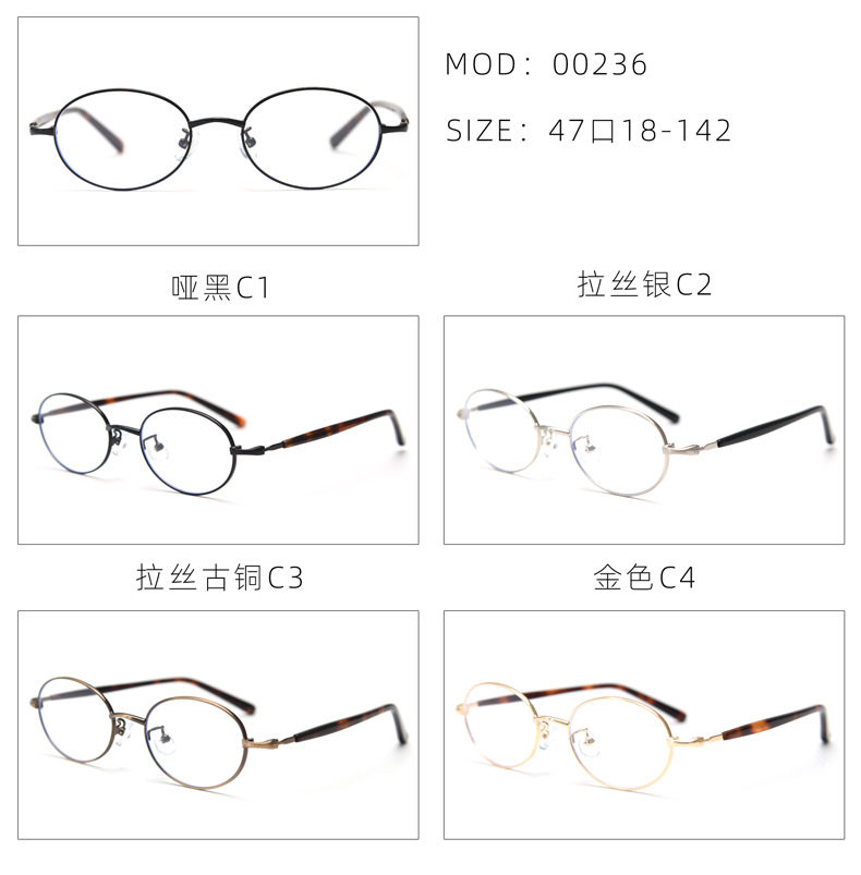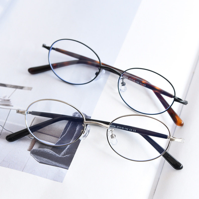 0236 Japanese and Korean retro oval myopia glasses frame artistic trendy men's and women's metal thin edge plain glasses frame with degrees