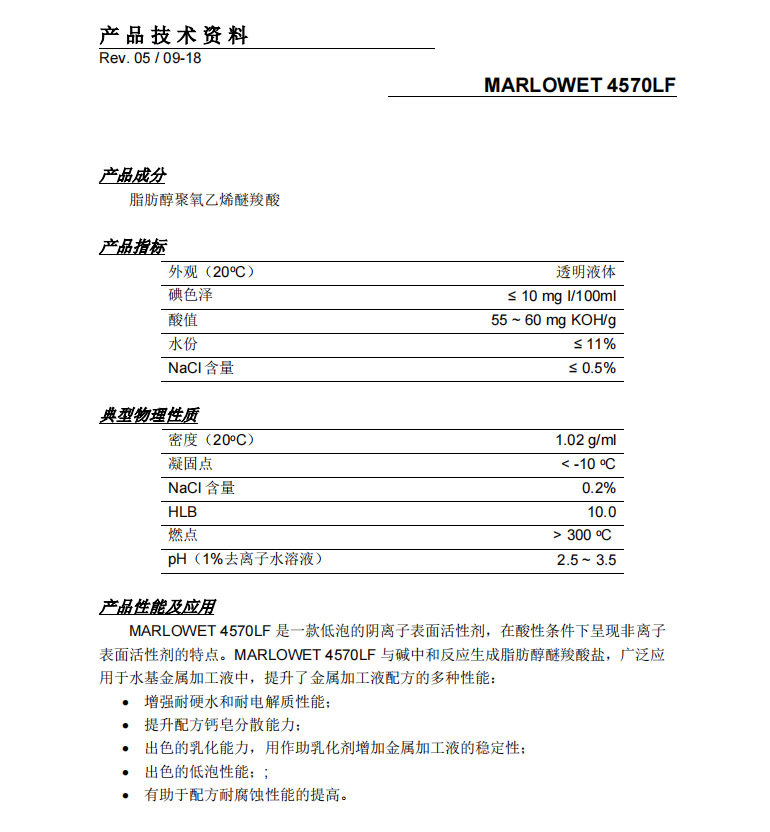 German Sassao 4570LF Fat Alcohol Etheric Acid Metal Processing Liquid Corrosion-resistant Surface Active Agent Emulsifier