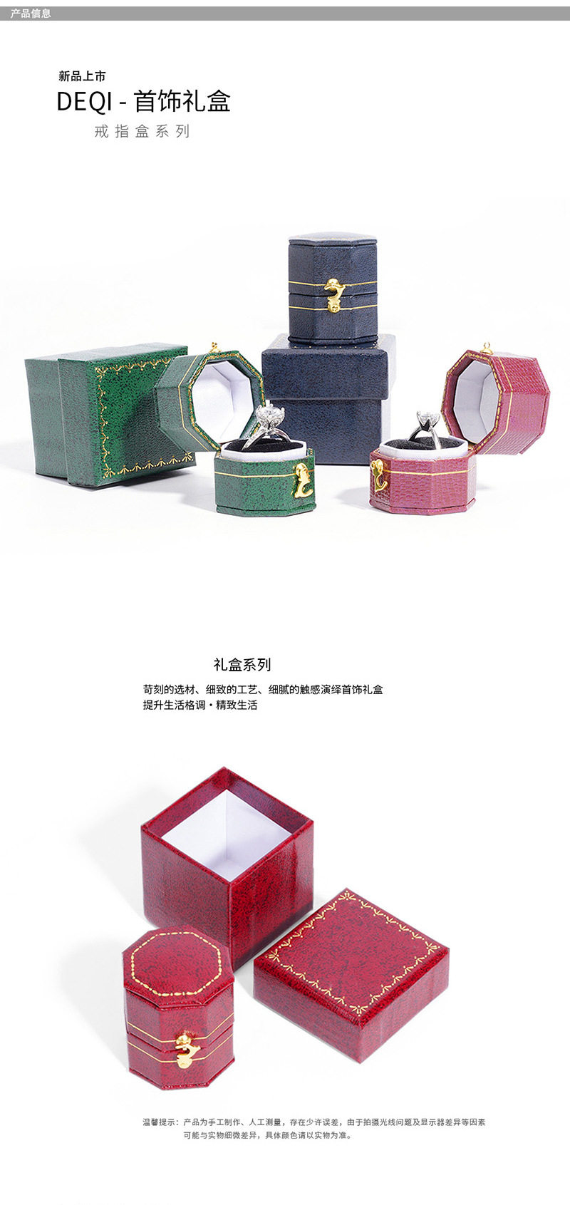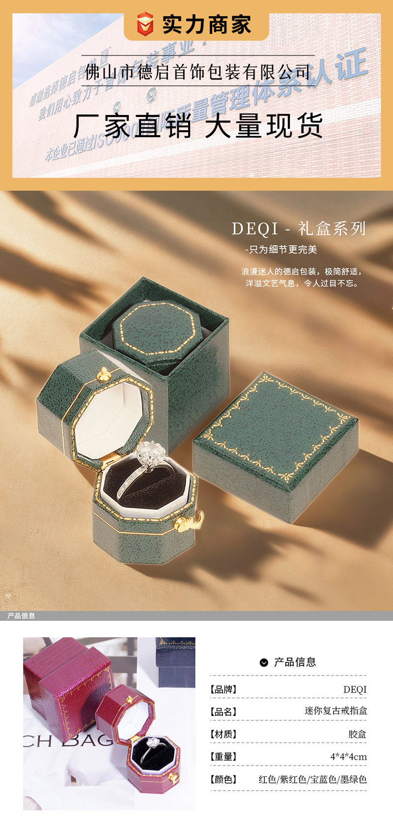 | Specifications | Octagonal ring box 3.9*4.1*3.7cm |