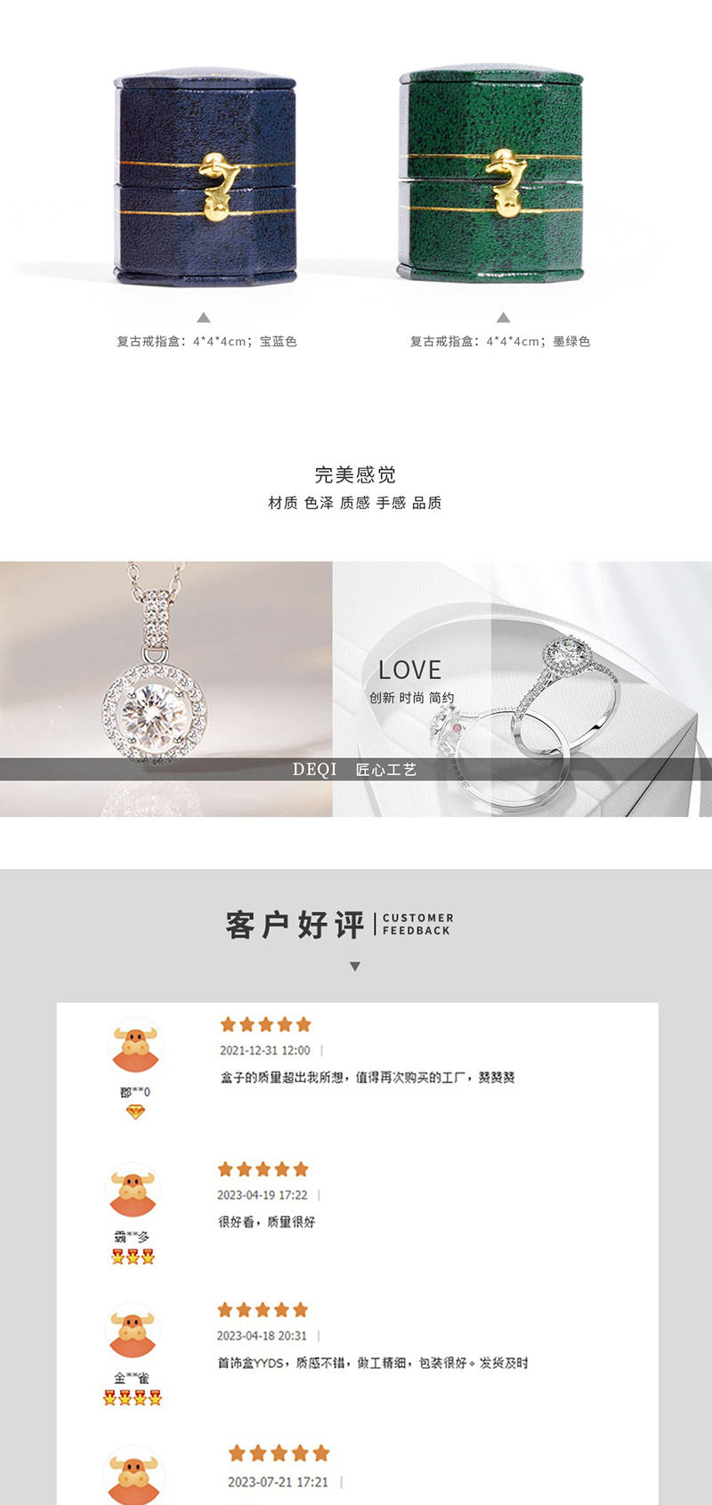 | Specification model | Rose red; octagonal ring box 3.9*4.1*3.7cm,Red; octagonal ring box 3.9*4.1*3.7cm,Blue; octagonal ring box 3.9*4.1*3.7cm,Green; octagonal ring box 3.9*4.1*3.7cm |