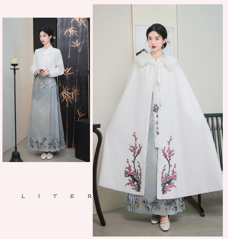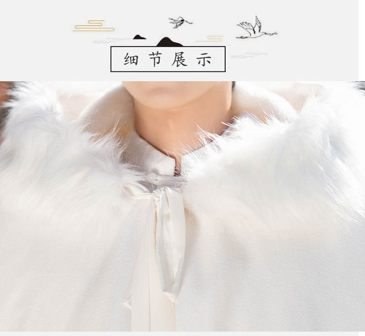 | Color | Jacquard new Chinese style top XY9186,Woven Gold vest skirt XY9186,White fleece-lined cloak + detachable fur collar (free size) XY9186 |