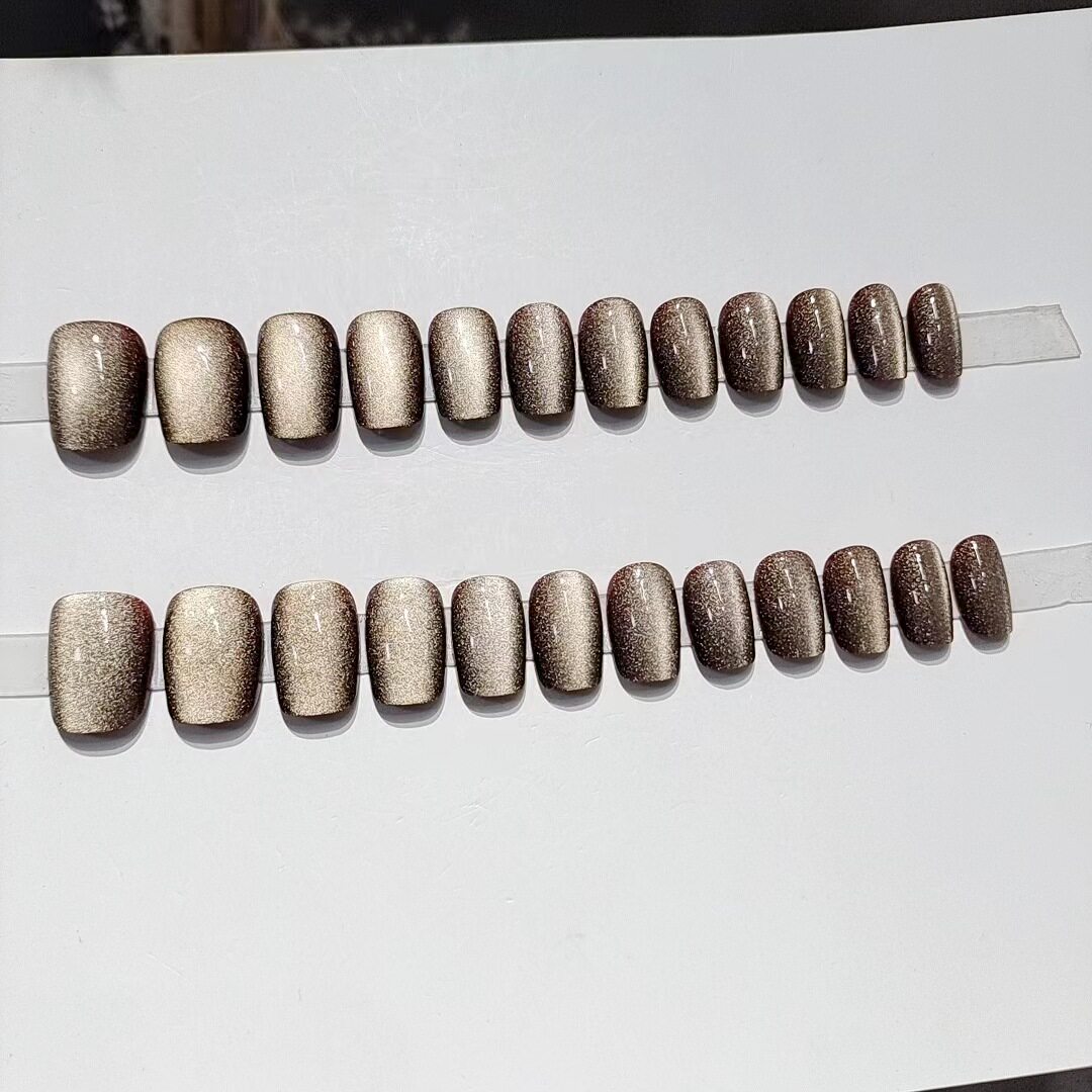 Wearing nail B776 mocha cat eye short ladder 24 pieces white flashing autumn and winter elegant nail art fake nail patch