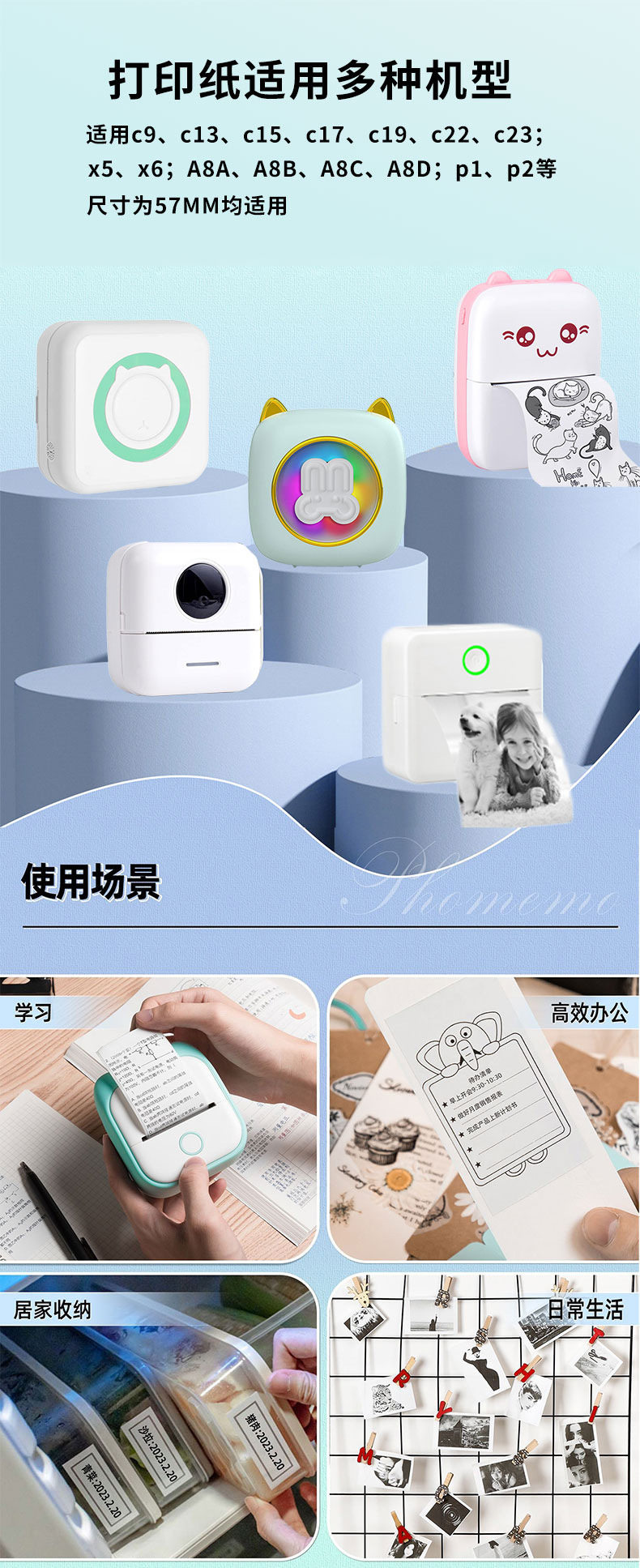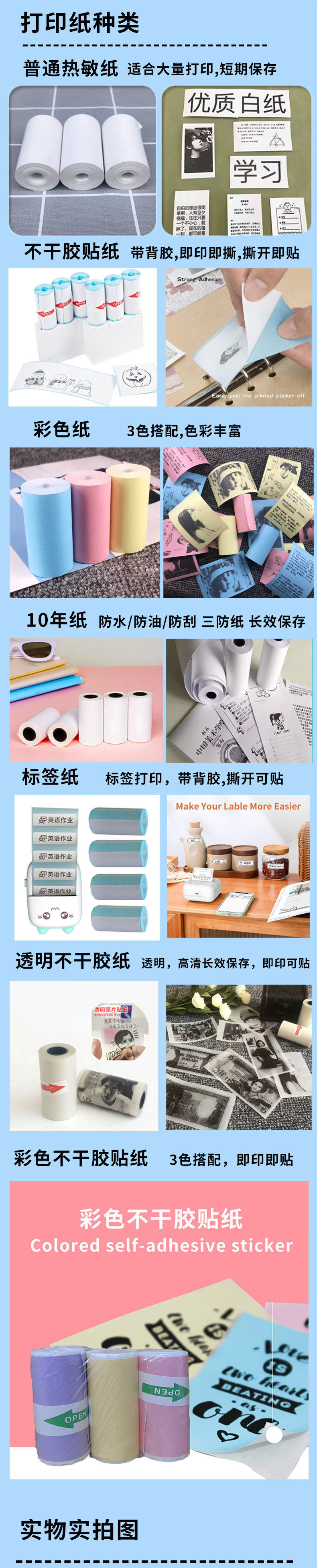 | Dimensions | Thermal paper * 1,Print camera paper * 1,Adhesive paper * 1,Label paper * 1,Print camera paper 5 rolls/pack,Thermal paper 5 rolls/pack,Adhesive printing paper 5 rolls/pack,Label paper 5 rolls/pack,Color three-color paper 3 rolls/pack,Transparent adhesive paper * 1,Sticker * 1,Pen * 6,Special suit Paper for Foreign Trade |