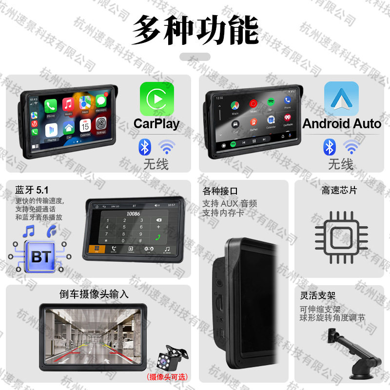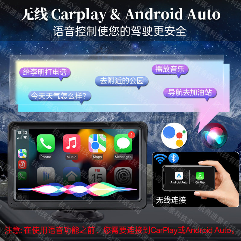 Cross-Border Hot Selling 7inch Portable Car Carplay Display Bluetooth 5.0 Wireless Connection