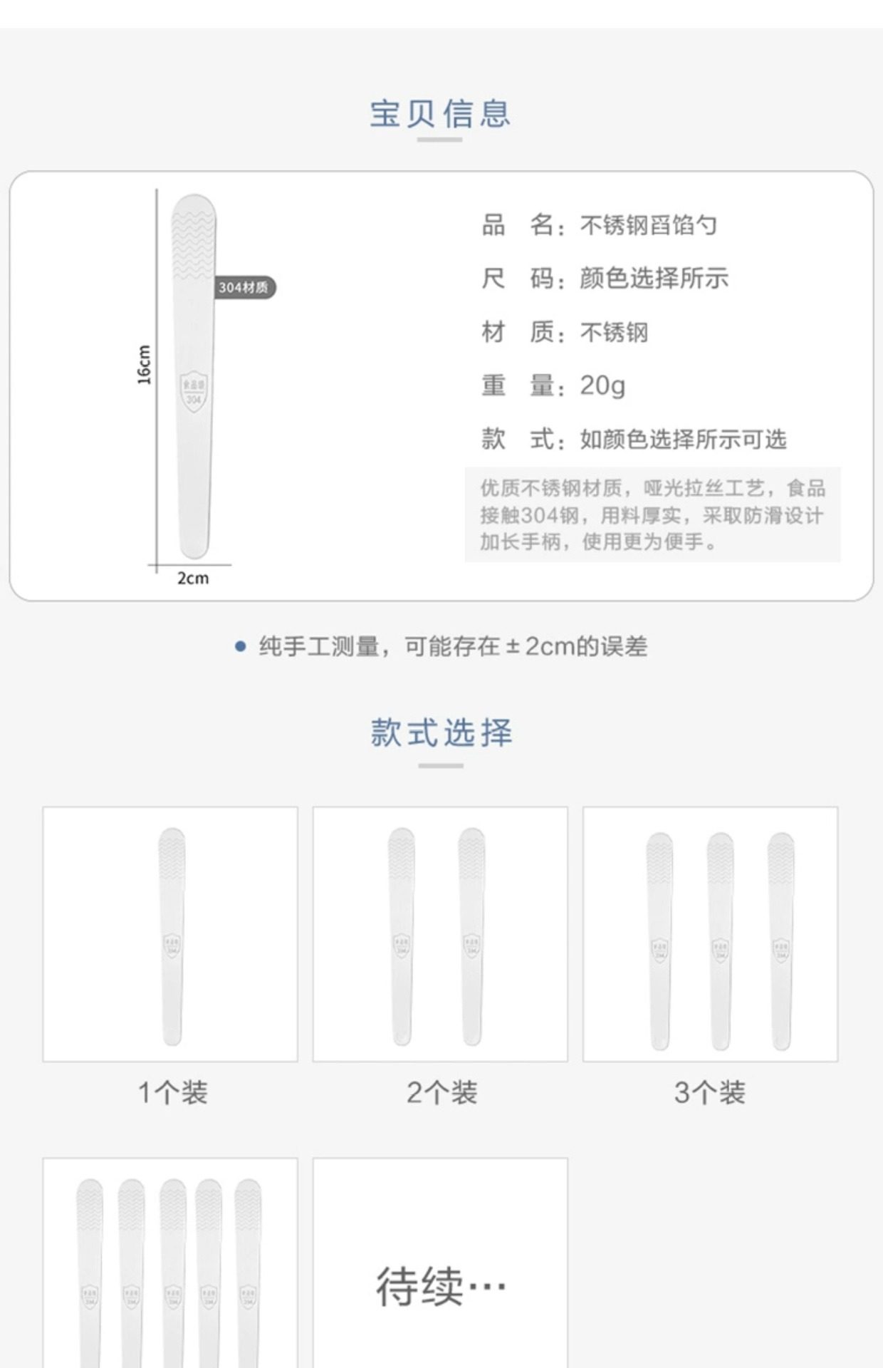 | Specifications | 304 stuffing spoon-1 pack,304 stuffing spoon-2 pack,304 stuffing spoon-3 Pack,304 stuffing spoon-5 Pack,304 stuffing spoon-6 pack,304 stuffing spoon-8 pack,304 stuffing spoon-10 pack |