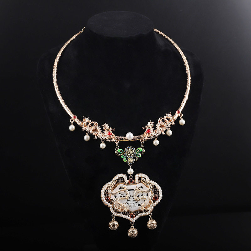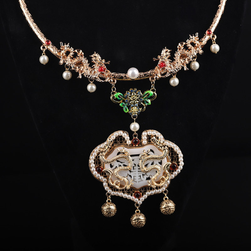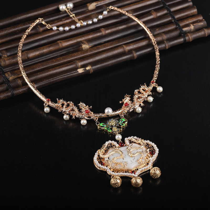 Hanfu accessories New Year's battle robe rich with safety lock collar ancient style imitation Jade long necklace Ming