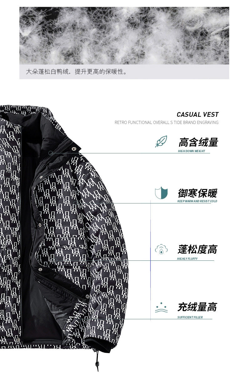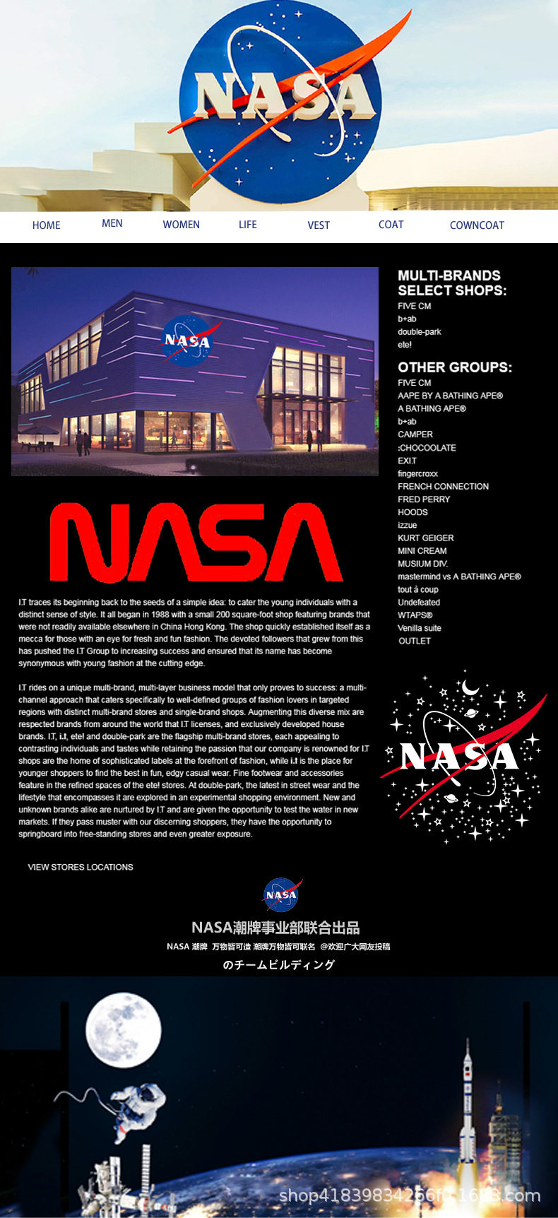 NASA Joint name 2023 Winter new stand collar down jacket men's loose all-match youth fashion brand casual jacket