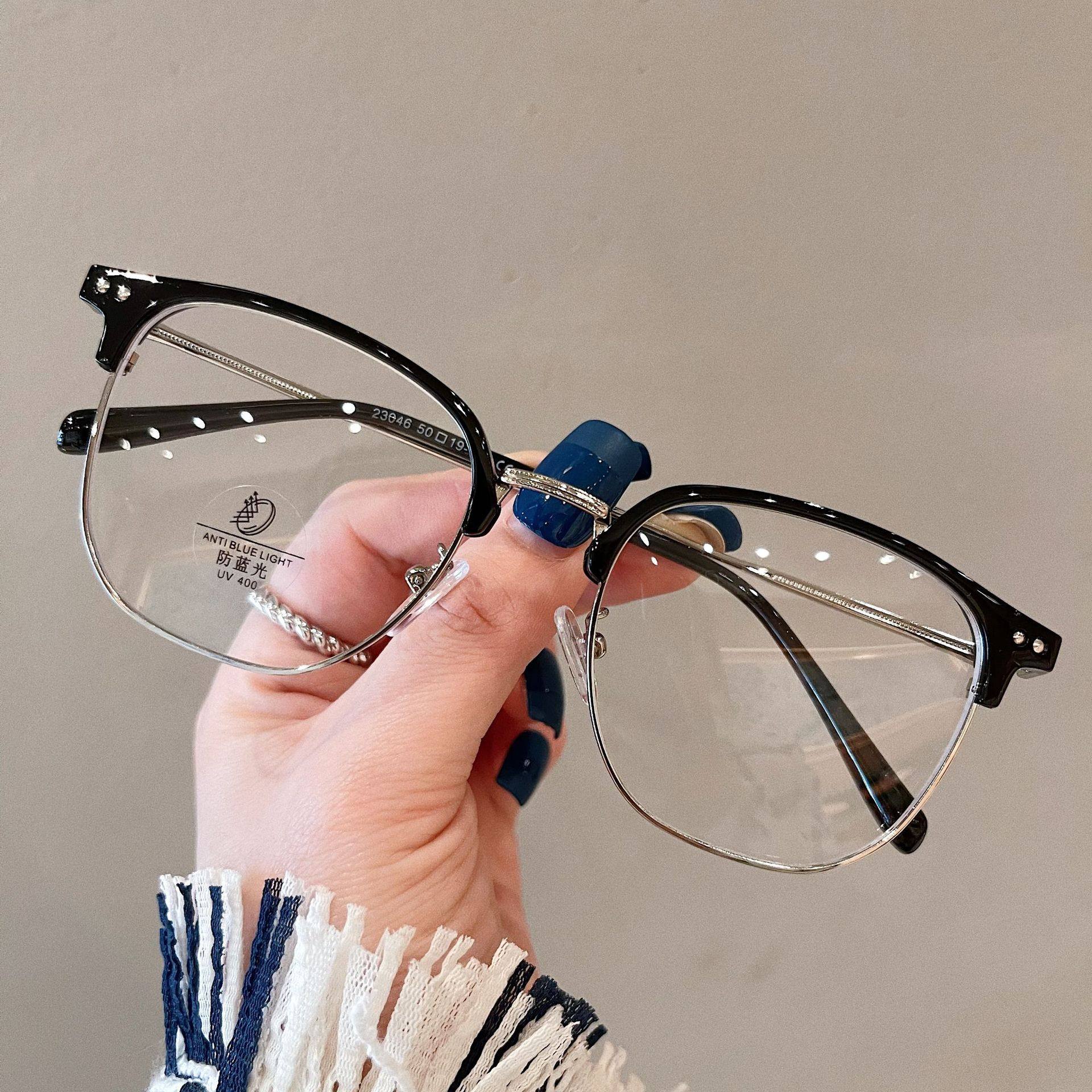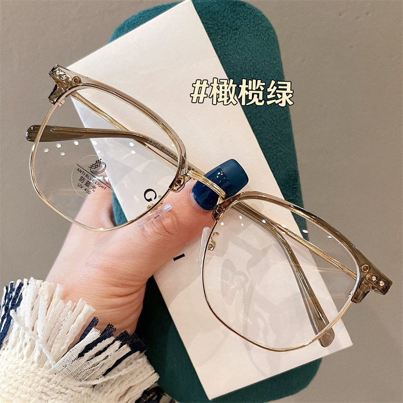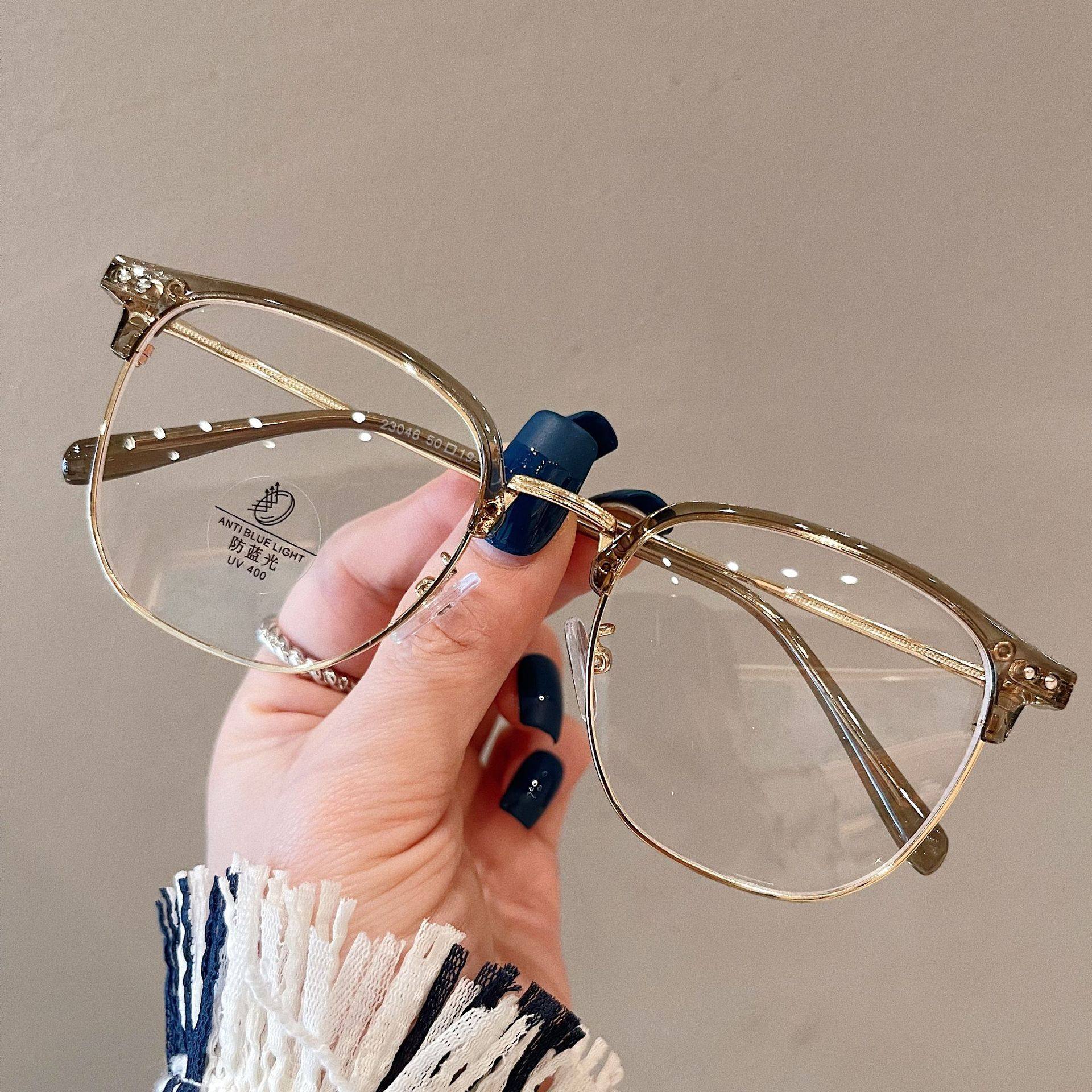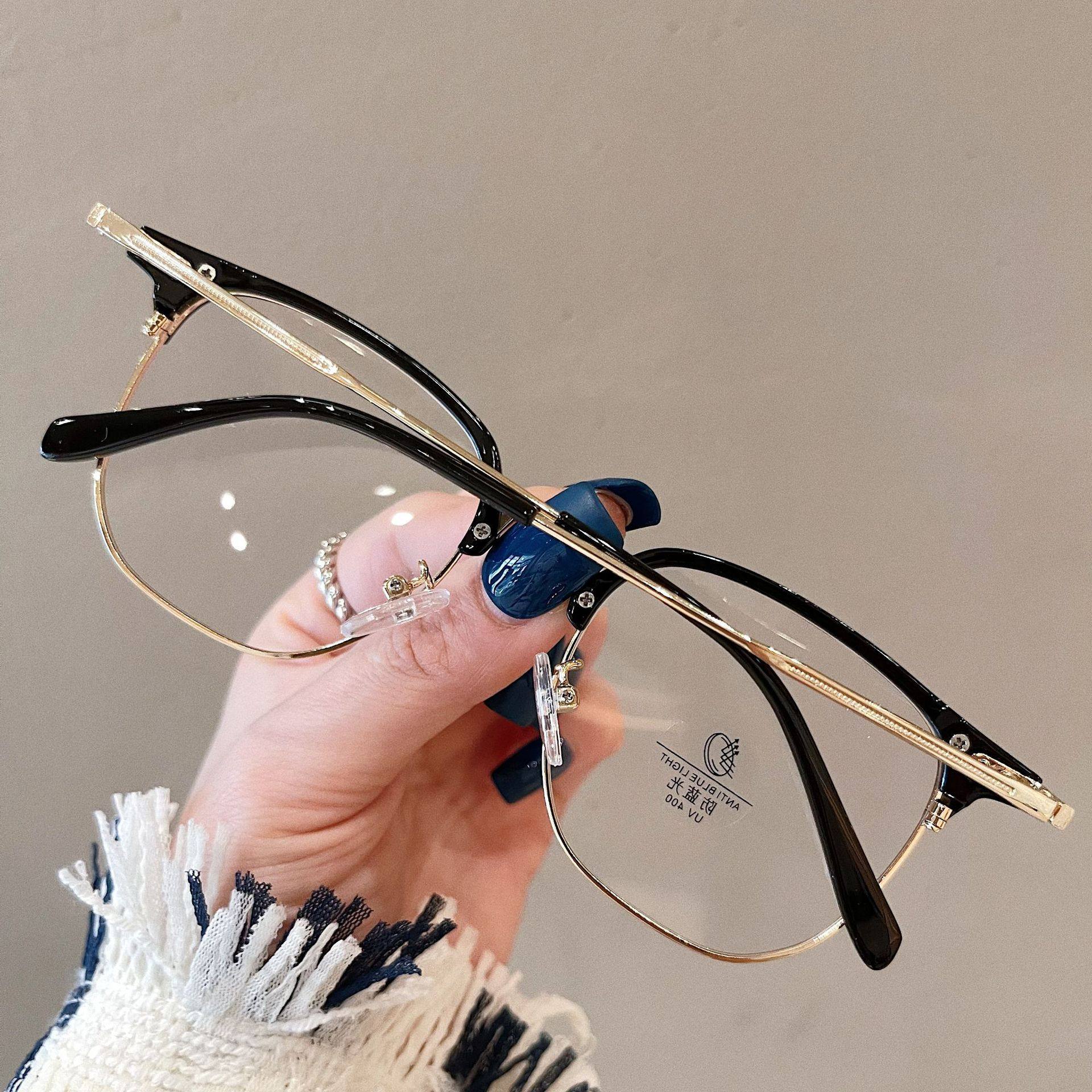 Half-frame glasses women's myopia can be equipped with high-grade glasses frame men's large frame plain slimming glasses frame