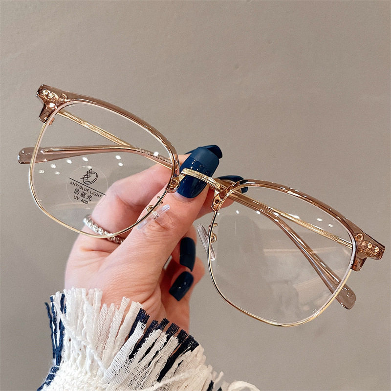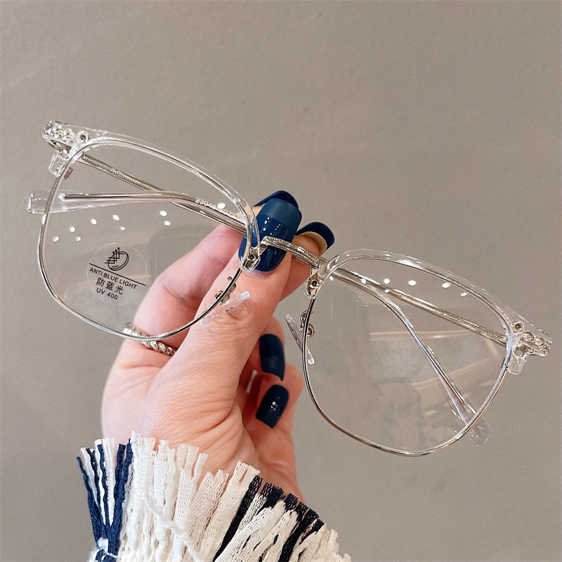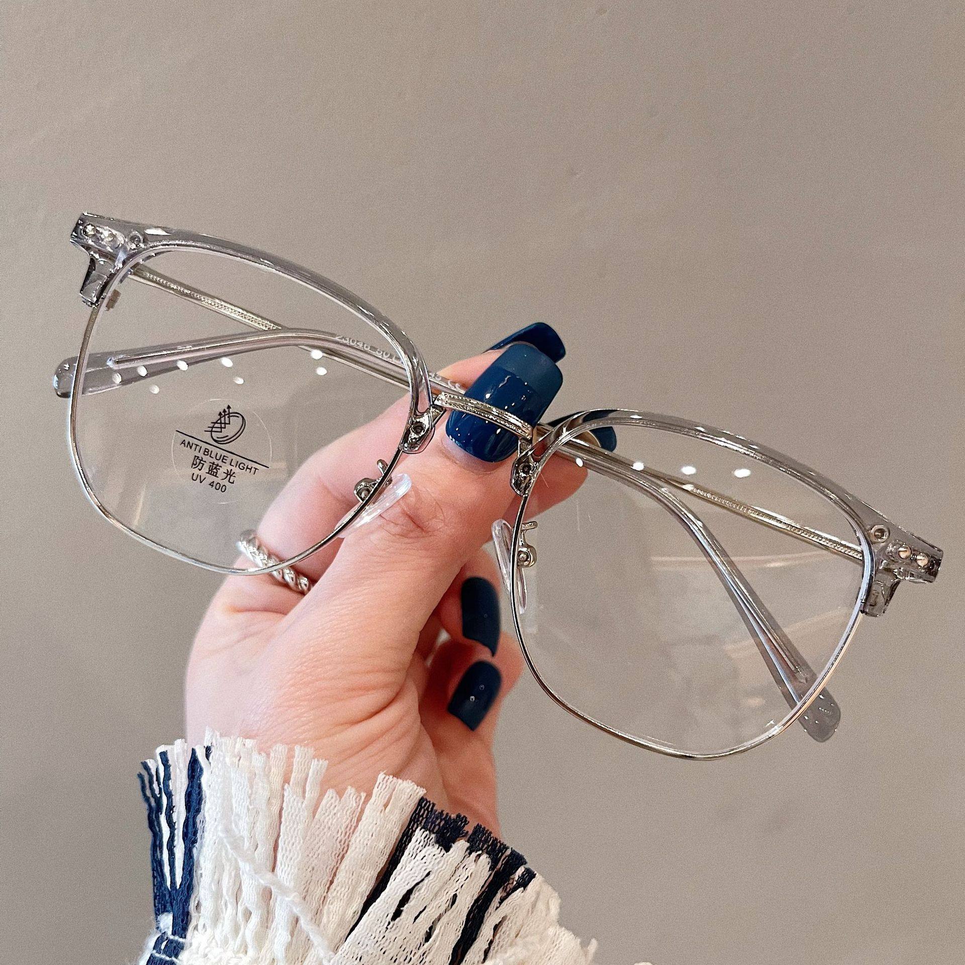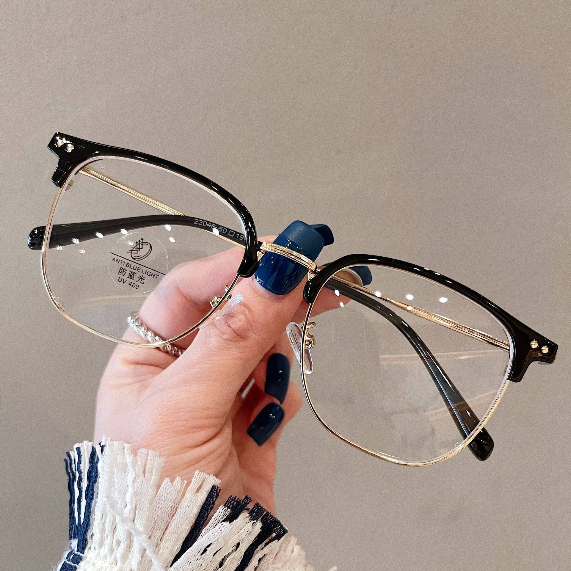 Half-frame glasses women's myopia can be equipped with high-grade glasses frame men's large frame plain slimming glasses frame