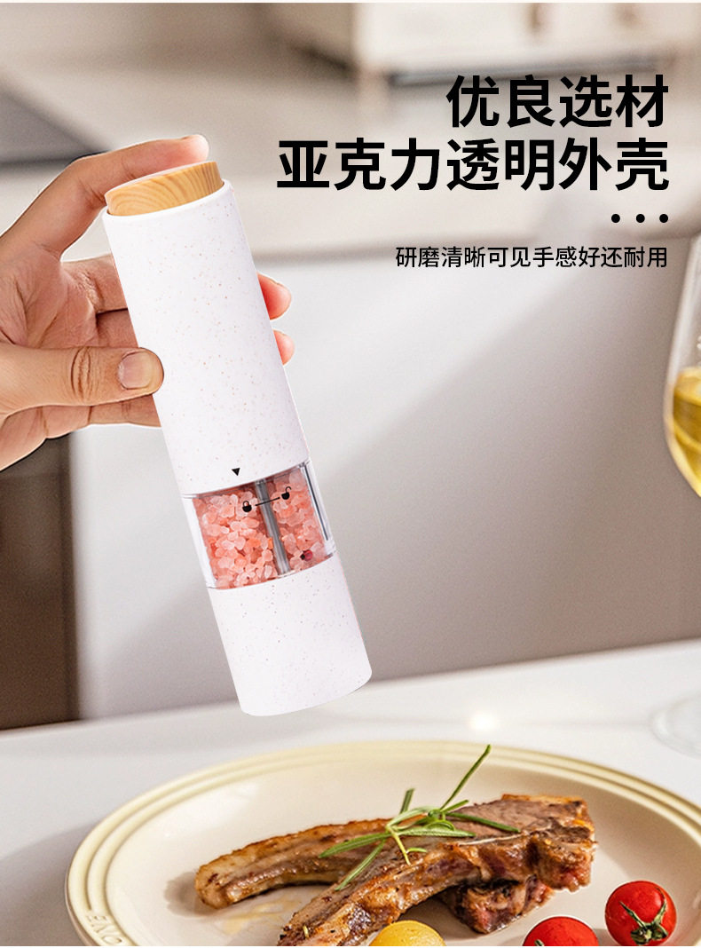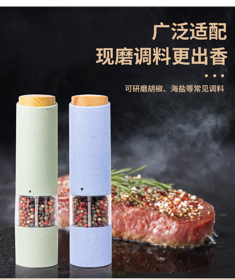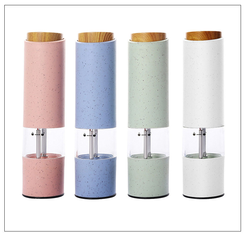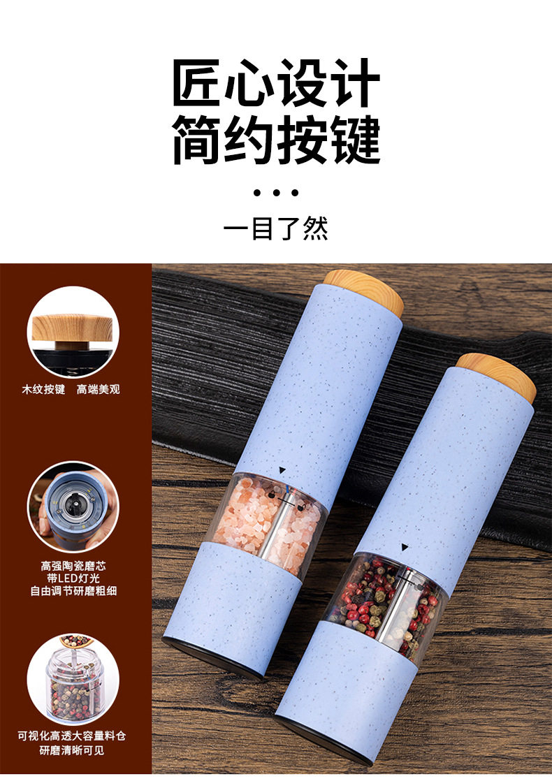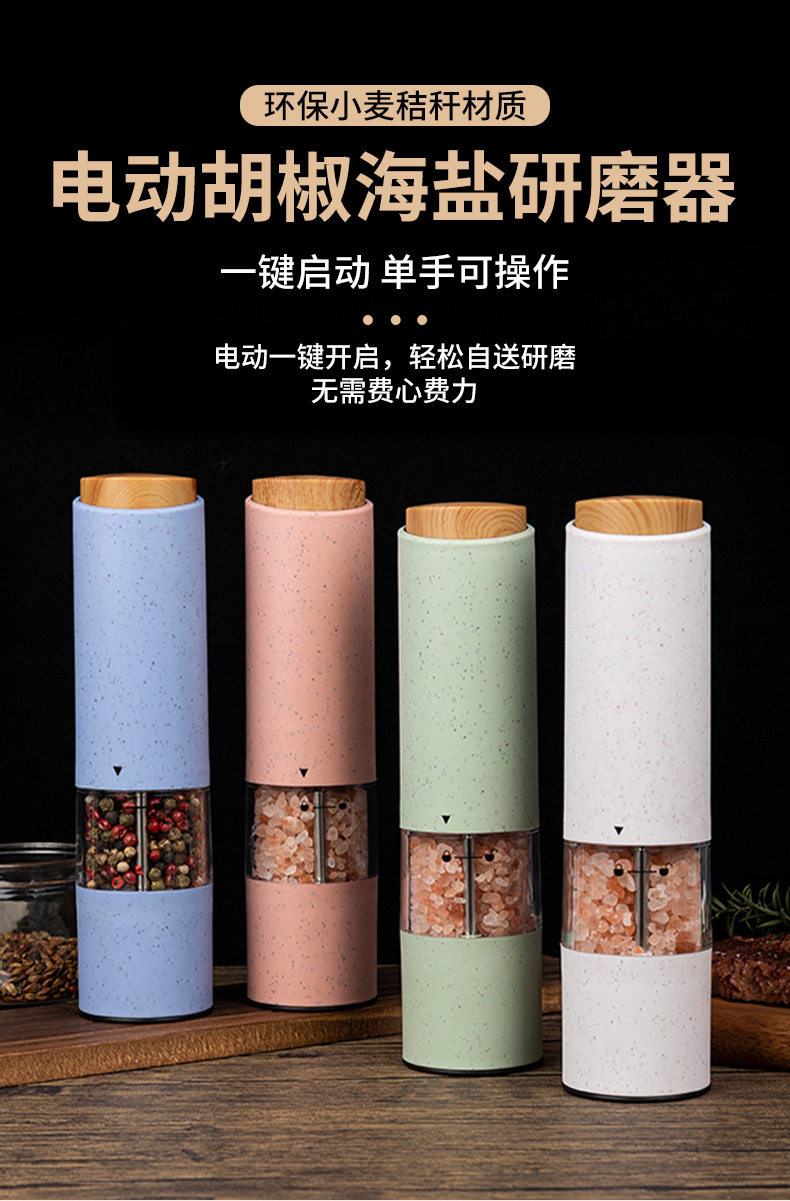 Cross-Border Wheat Straw Pepper Mill Electric Sea Salt Grinder Pepper Rose Salt Set Black and White Multi-Color Ready Stock