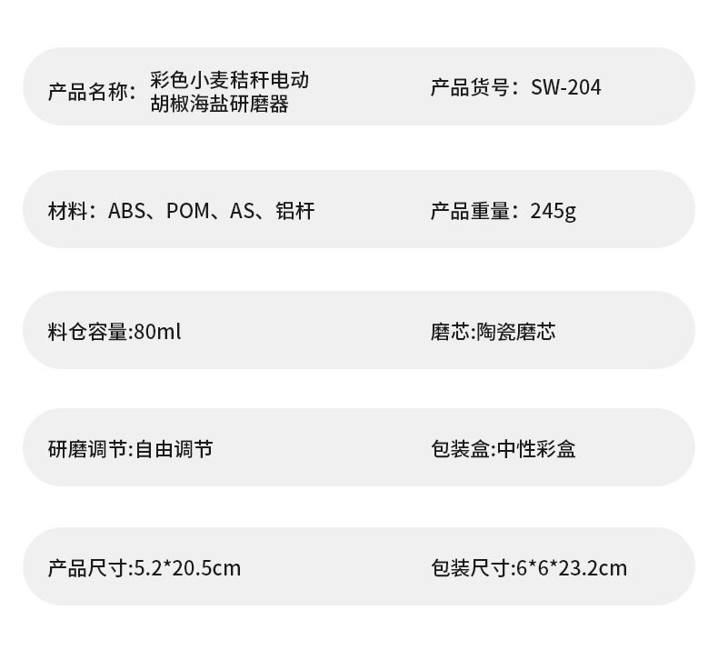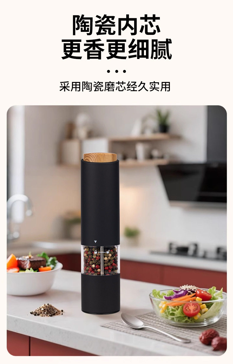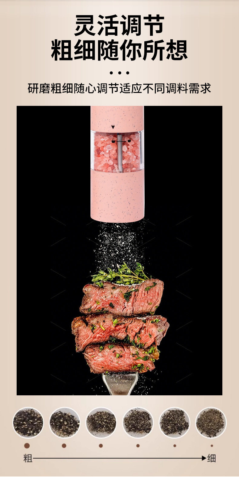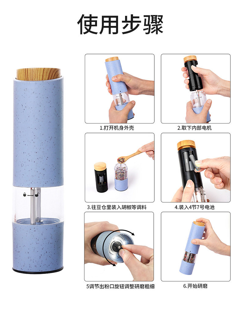 Cross-Border Wheat Straw Pepper Mill Electric Sea Salt Grinder Pepper Rose Salt Set Black and White Multi-Color Ready Stock