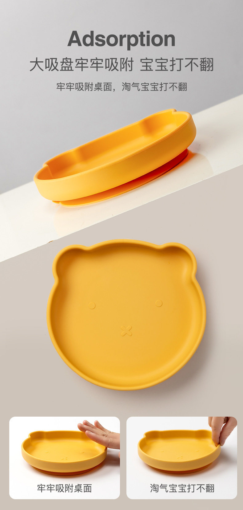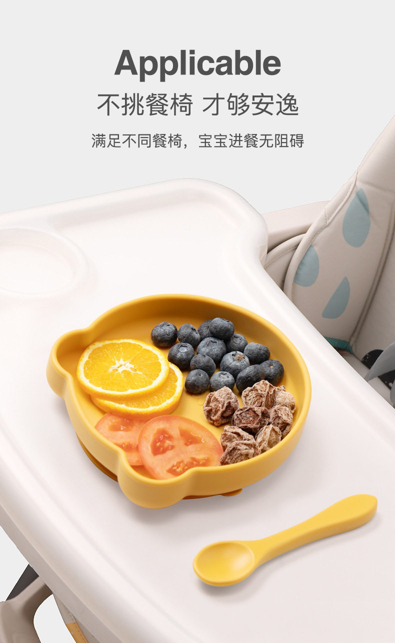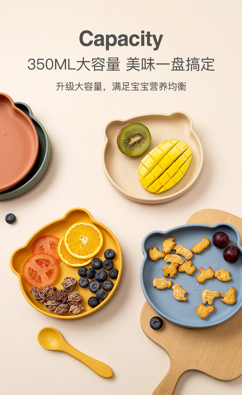 ins baby plate children's silicone food supplement bowl cartoon bear plate drop-resistant suction cup tableware super suction