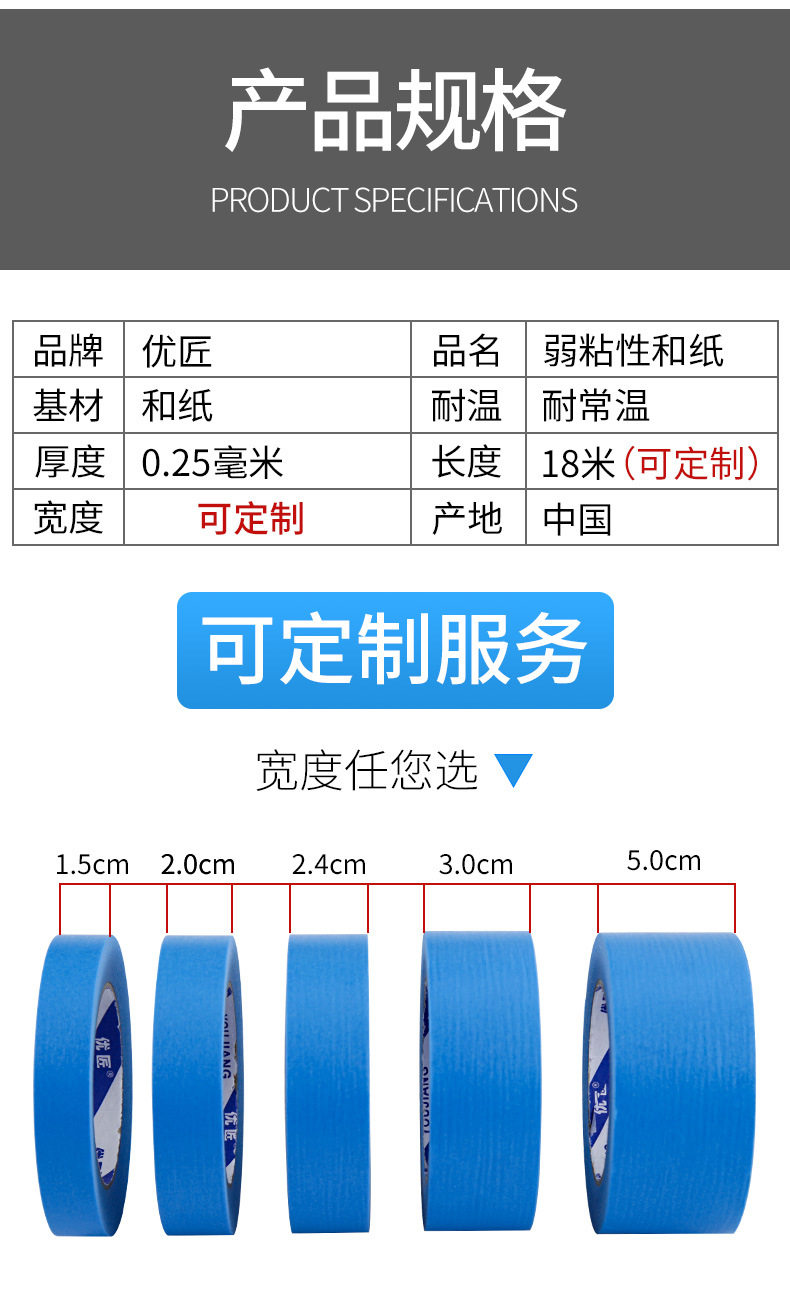 Model 1cm wide * 50 m long/roll,1.2cm wide * 50 m long/roll,1.5cm wide * 50 m long/roll,1.8cm wide * 50 m long/roll,2cm wide * 50 m long/roll,2.4cm wide * 50 m long/roll,Width 3cm * length 50 m/roll,4cm wide * 50 m long/roll,Width 5cm * length 50 m/roll