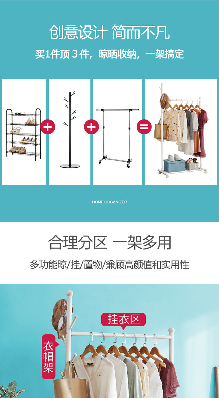 Simple Clothes Hanger Floor-standing Single-pole Coat Rack Folding Household Floor-standing Clothes Hanger Dormitory Coat Rack Indoor Hanger