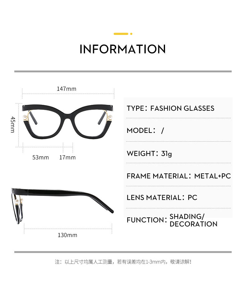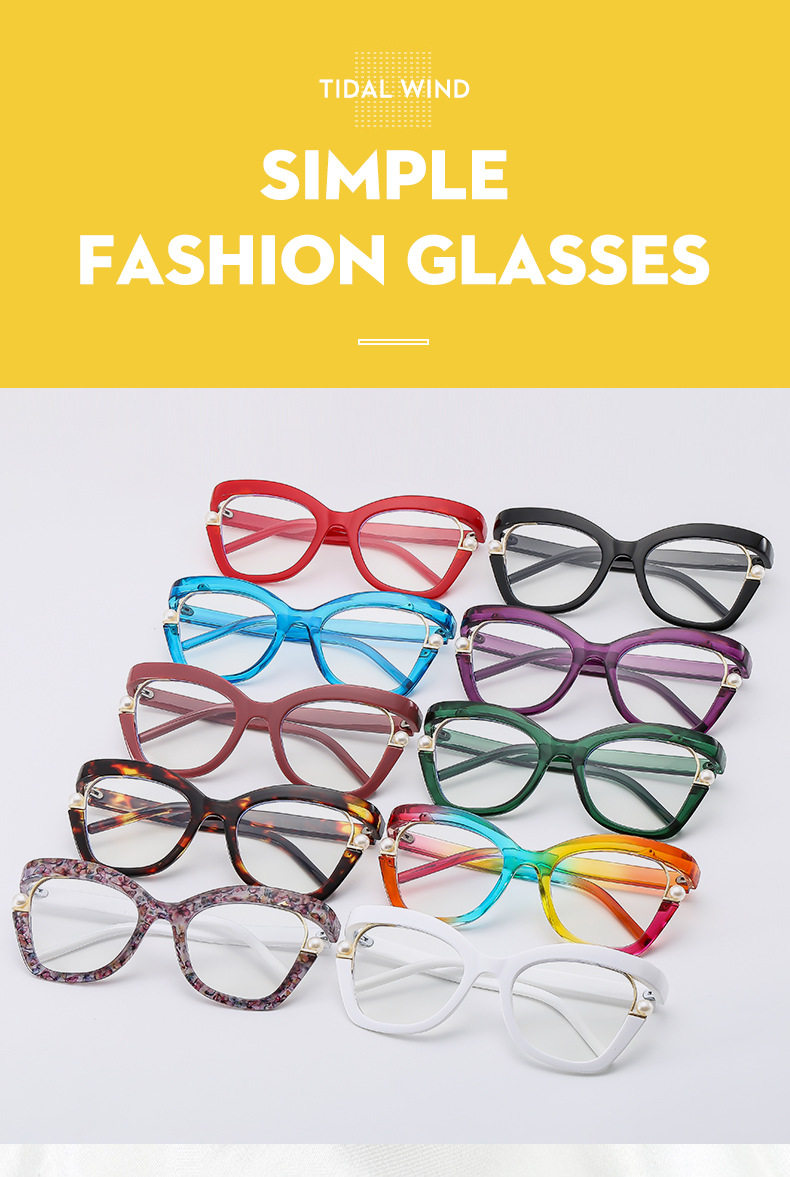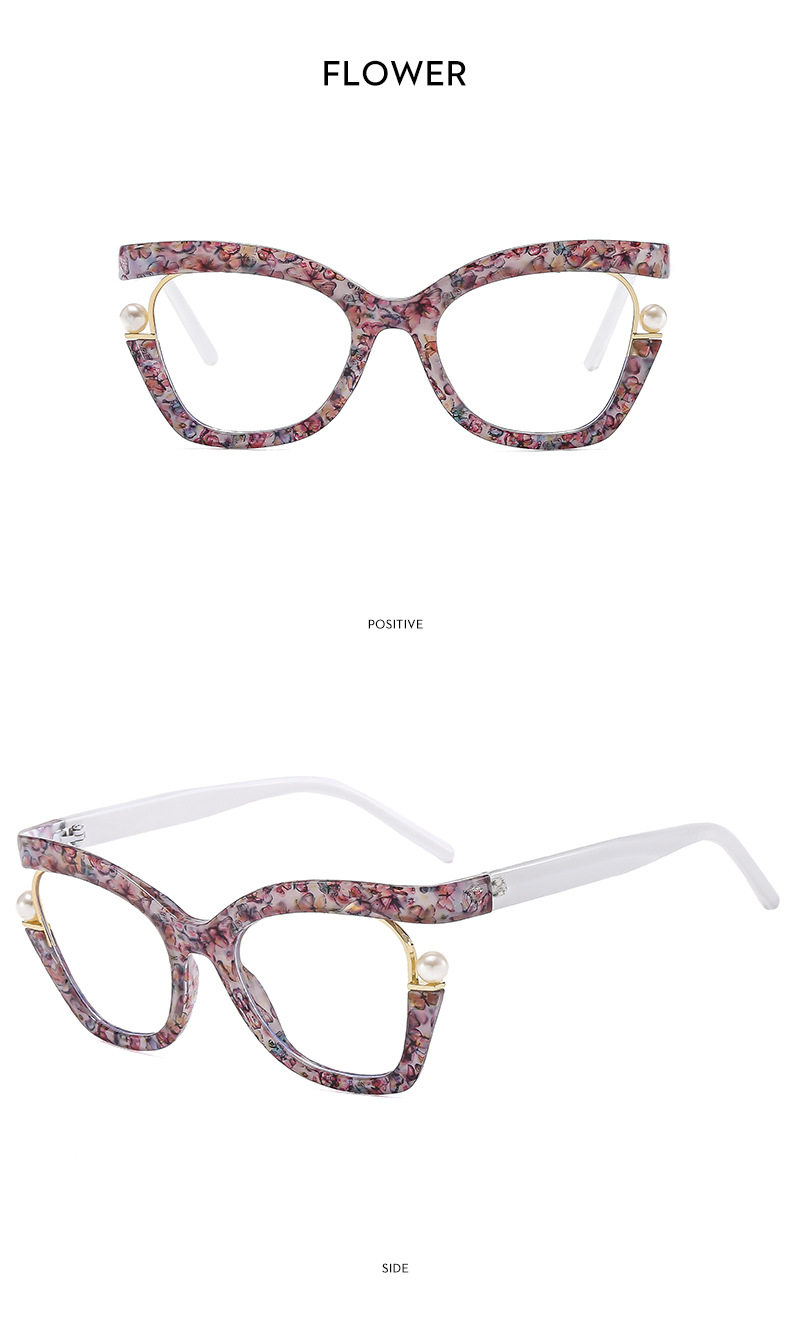 2024 new anti-blue light Women's plain glasses cross-border personalized colorful Pearl decorative glasses frame elegant glasses frame