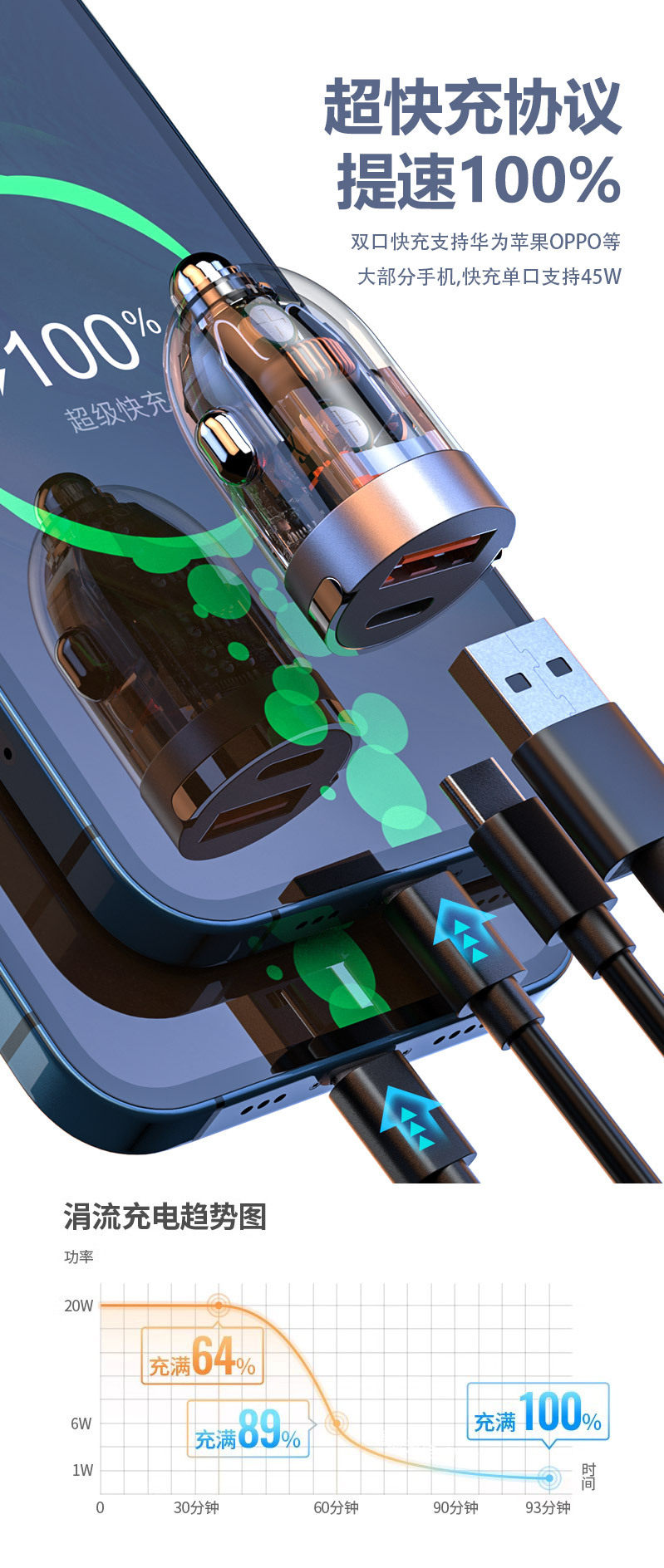 | Model | Invisible transparent version PD45W fast charge,Invisible transparent version PD30W fast charge,Mini transparent version PD45W fast charge,Mini transparent version PD30W fast charge,PD30W+22.5W |