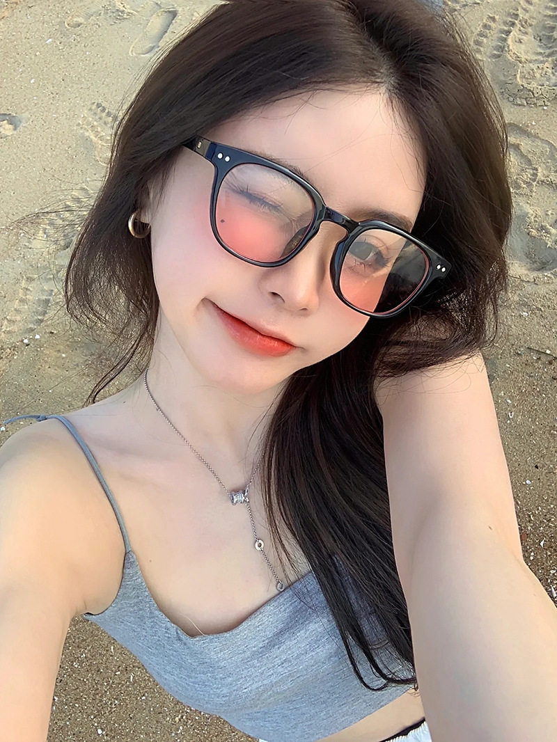 New anti-blue light glasses beige nail small square retro black frame plain glasses optical myopia frame glasses 1015