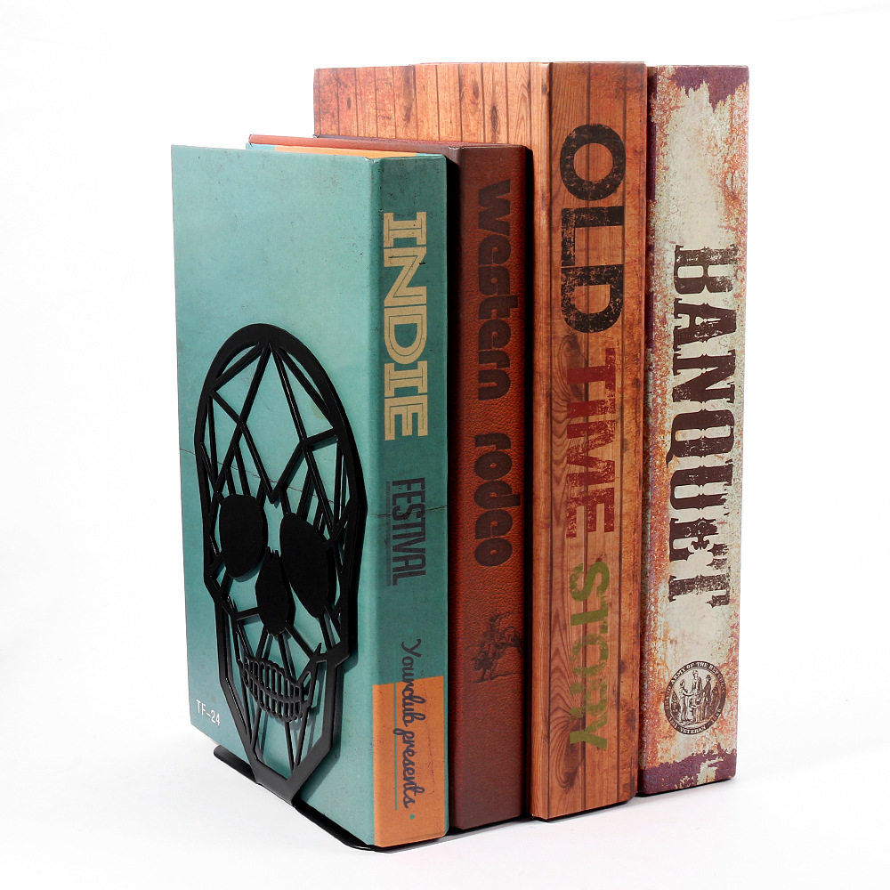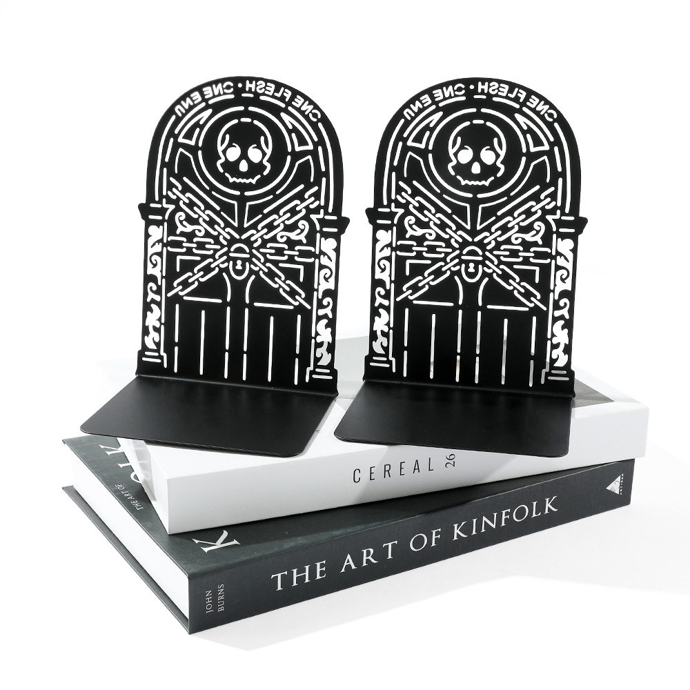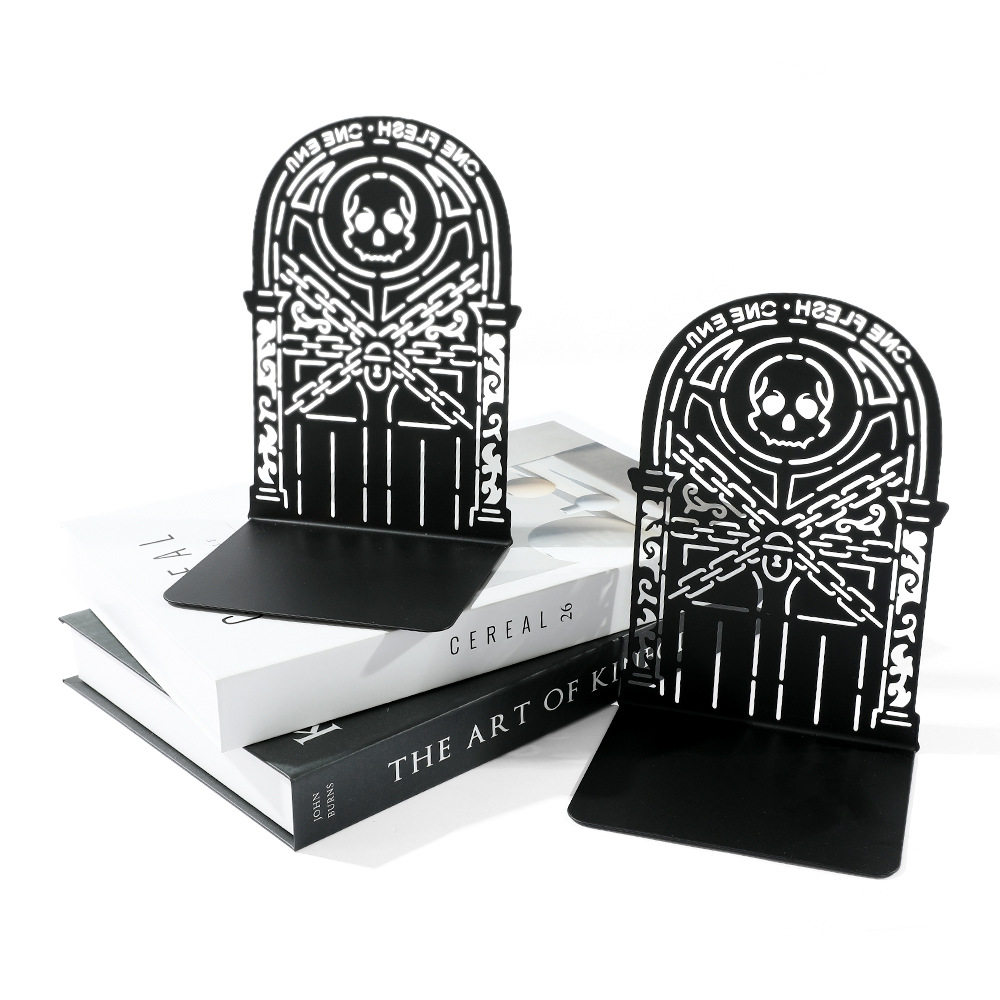 Creative skull metal cutting book stand hollow craft desktop bookshelf student desktop storage decorative bookend wholesale