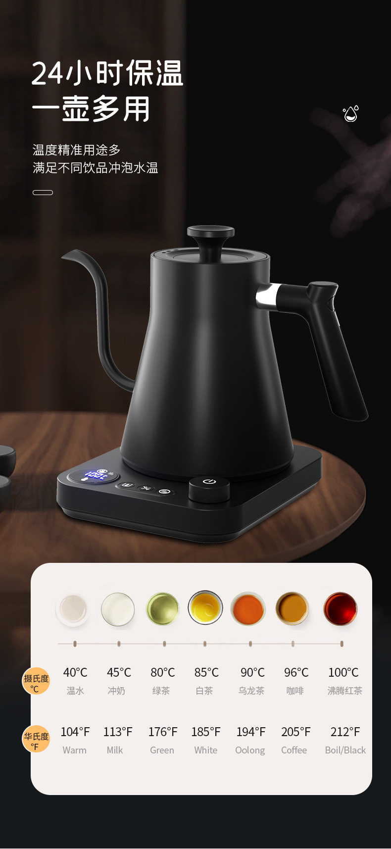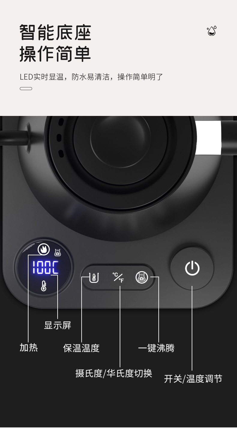 Gooseneck Kettle Cross-border Intelligent Constant Temperature Electric Water Kettle Hand Brewing Pot Coffee Pot Gooseneck Pot New 2024