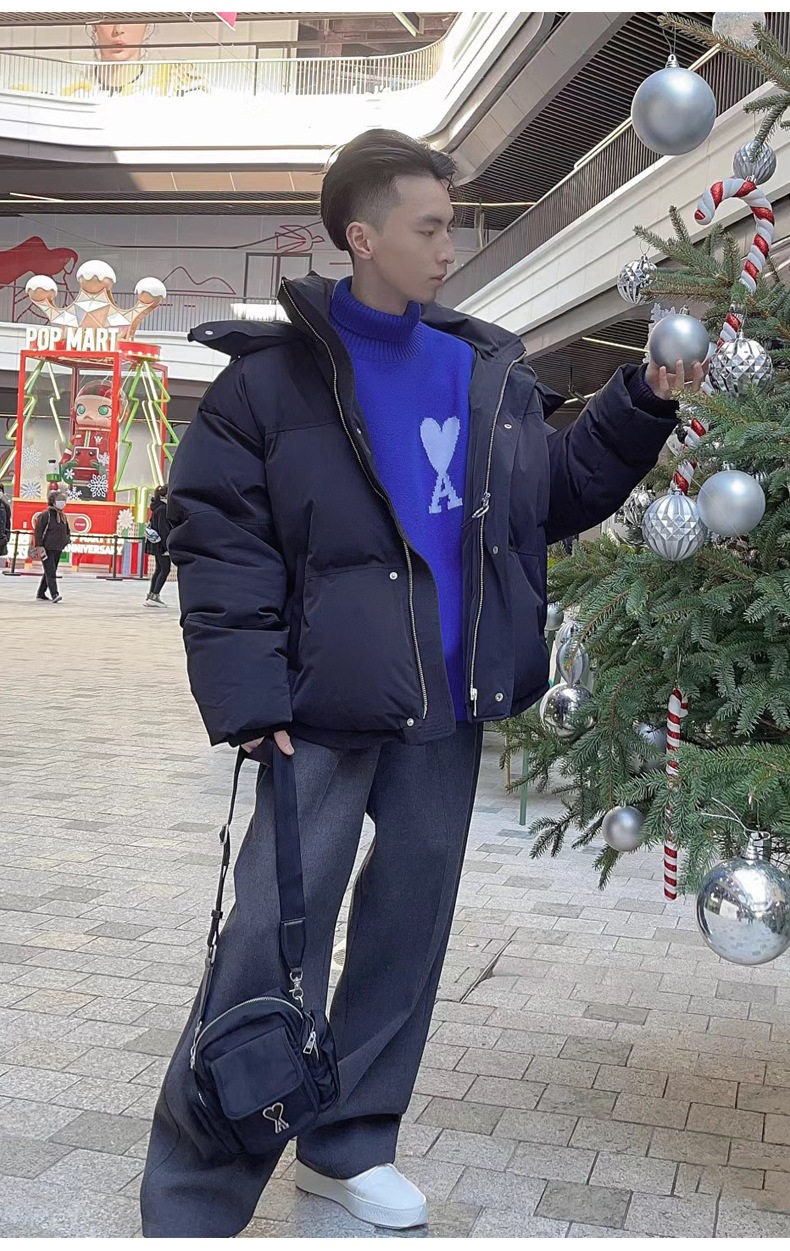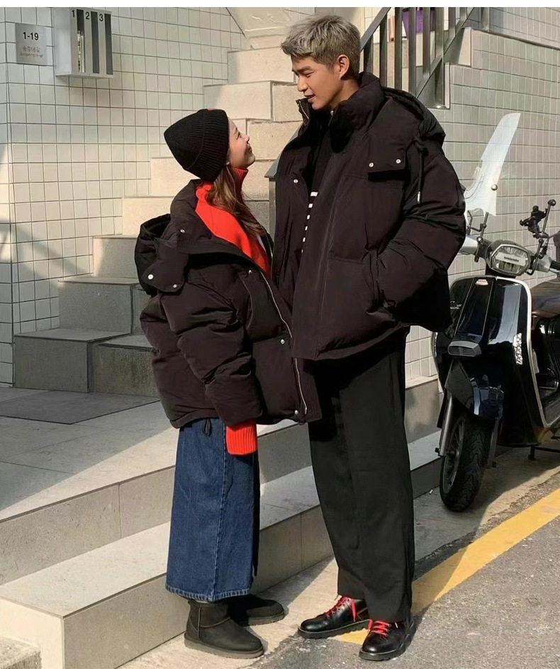 Non-diamond velvet high fluffy genuine down jacket men's and women's same 450g 90 white duck down thickened hooded coat winter clothing