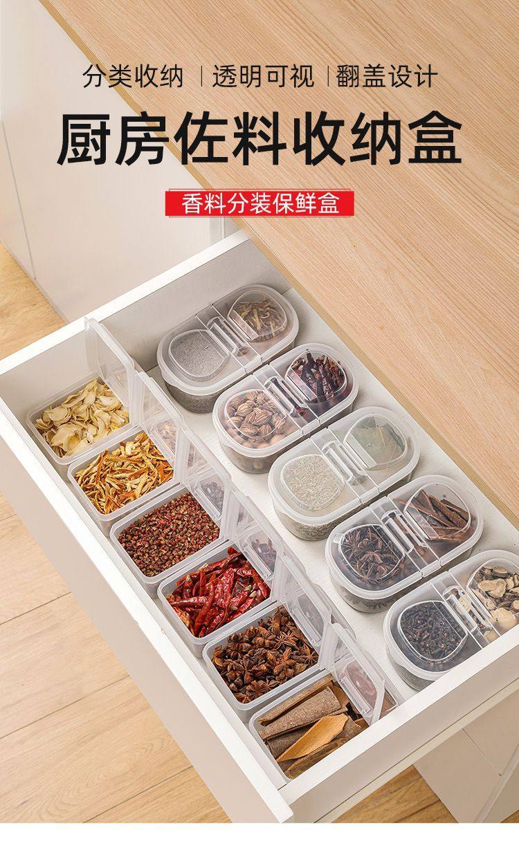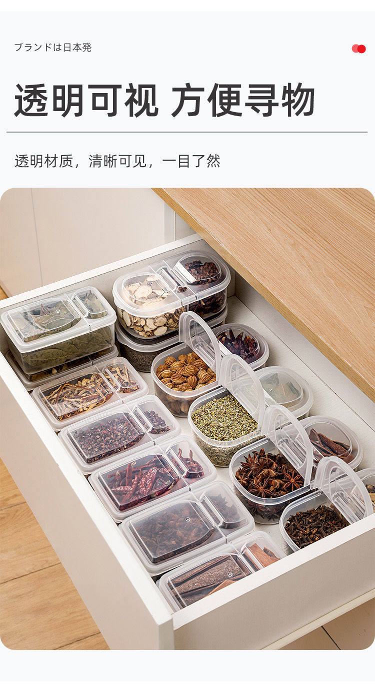Kitchen compartment seasoning box octagonal cinnamon spice storage box stall ingredients crisper sealed plastic packing box