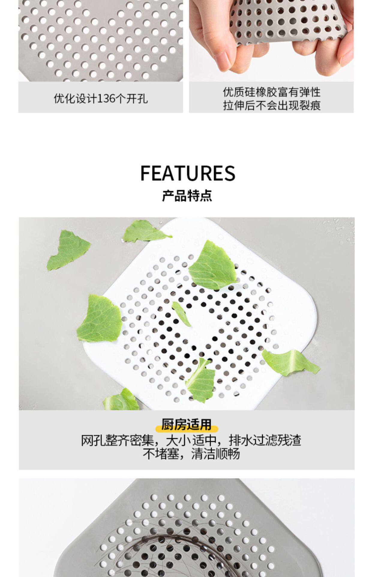 Square Deodorizer Silicone Mat Floor Drain Filter Toilet Anti-Odor Deodorant Blocking Kitchen Sewer Anti-Blocking Artifact