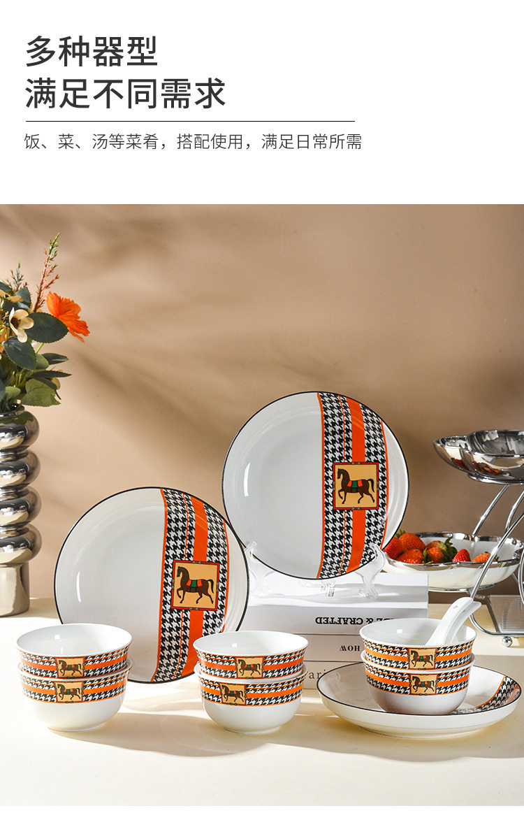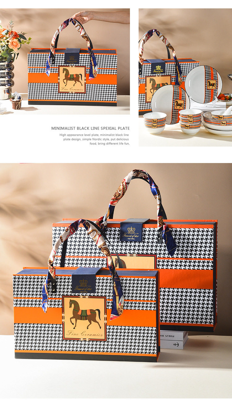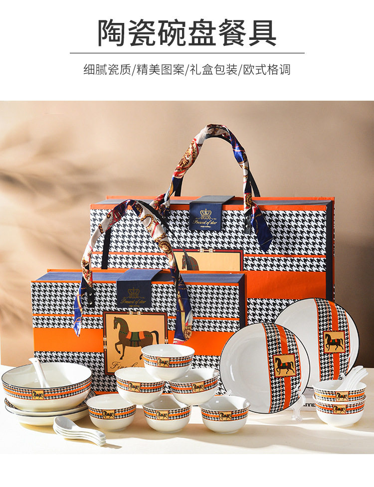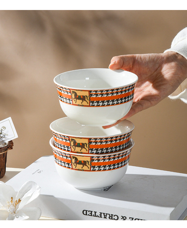 Horse Retro Style Ceramic Tableware Bowl and Chopsticks suit Light Luxury Gift Boxed Wedding Accompanying Gift Opening Festival housewarming