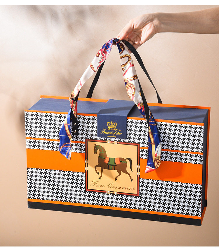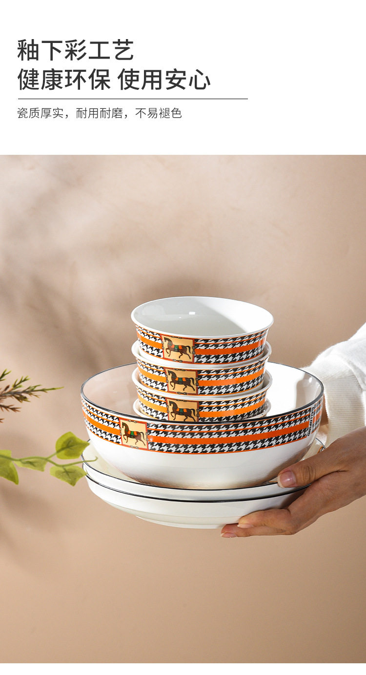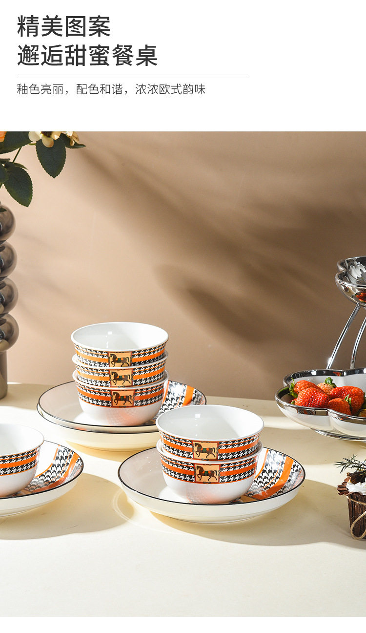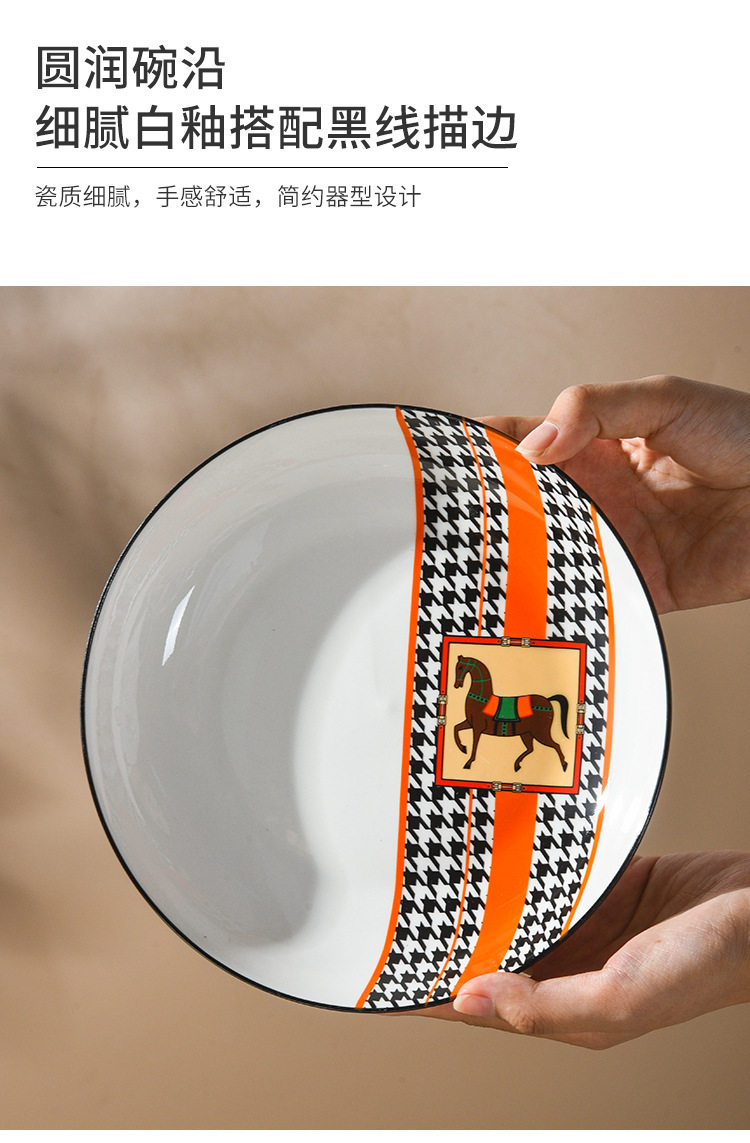 Horse Retro Style Ceramic Tableware Bowl and Chopsticks suit Light Luxury Gift Boxed Wedding Accompanying Gift Opening Festival housewarming