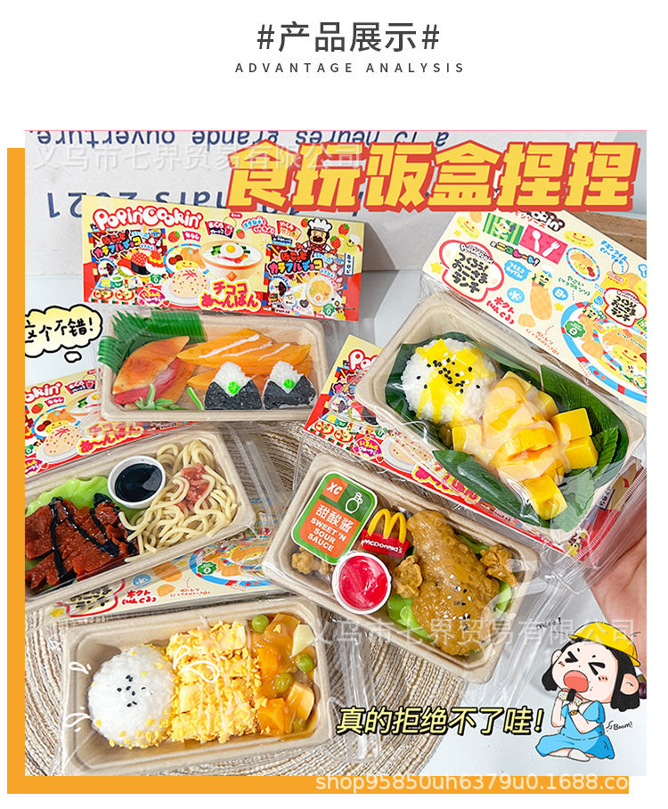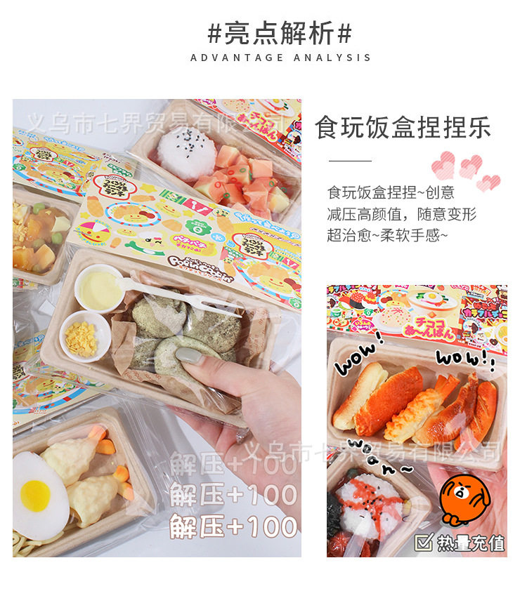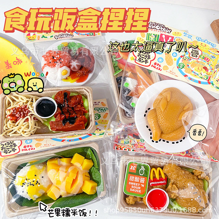 Simulation food and play box lunch fried chicken package pinch le braised pork rice curry rice abalone play house decompression toy