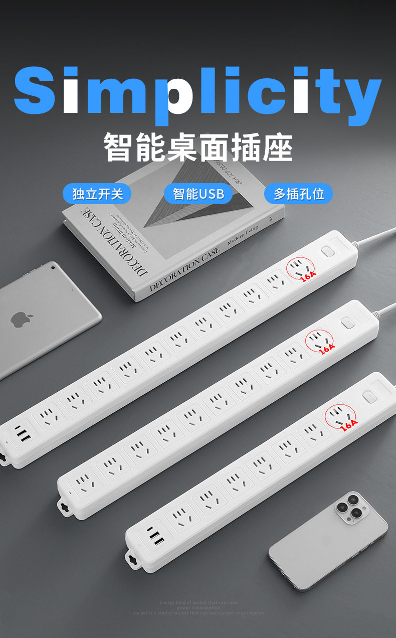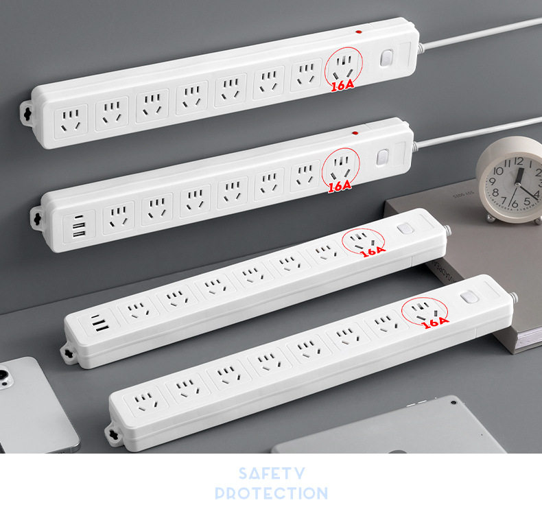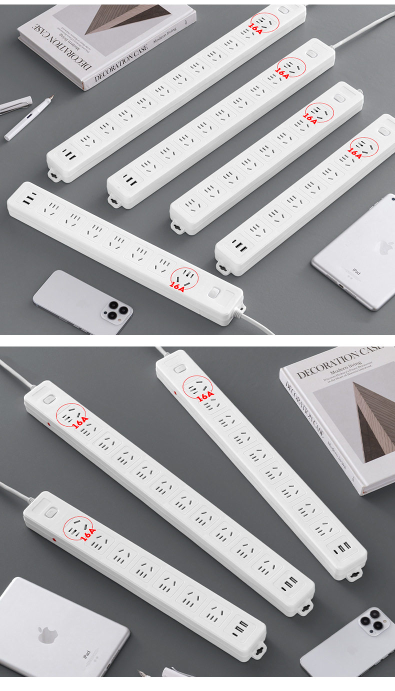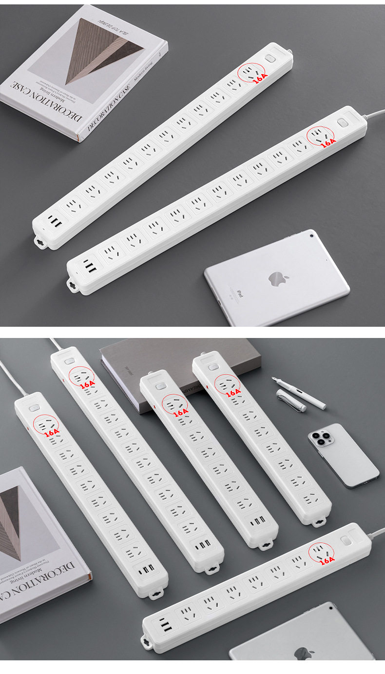 Long Line Straight Socket 10A/16A Jack Multi-Hole Wiring Board with USB Multi-Function Office Home Socket