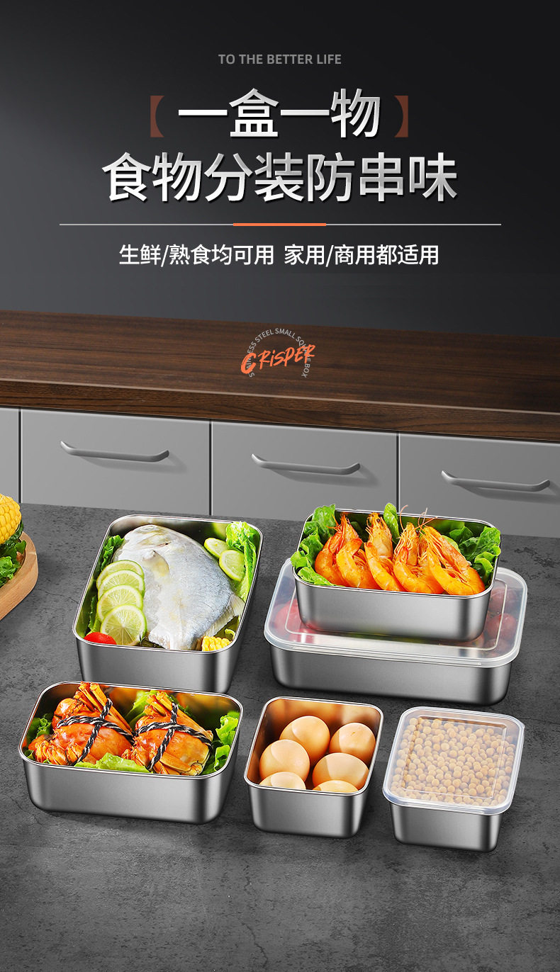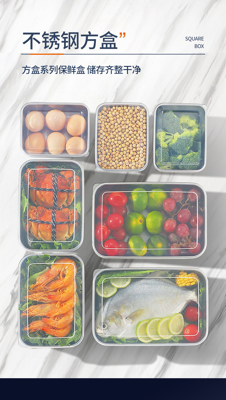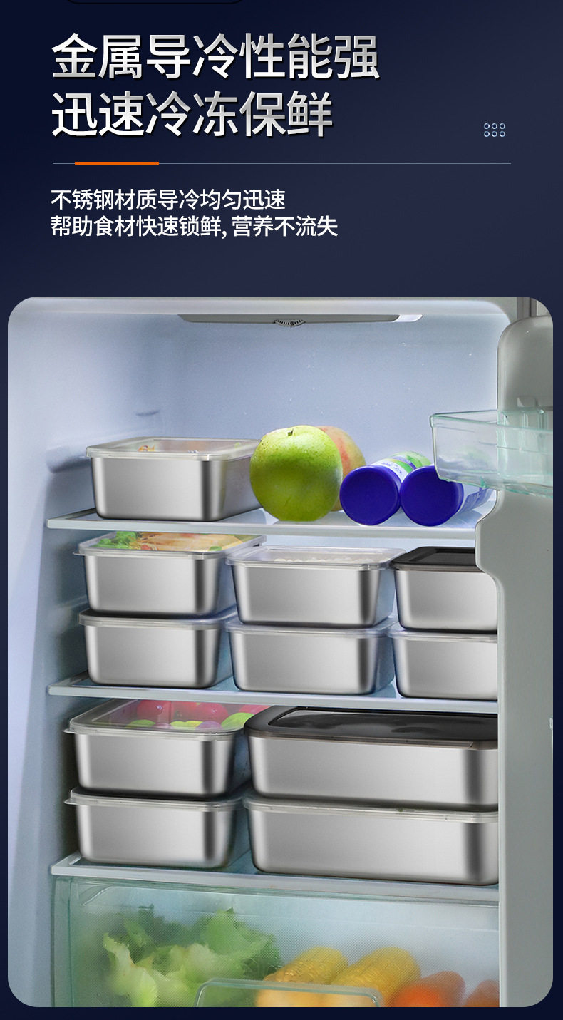 Cross-Border Stainless Steel Food Storage Container with Lid, Spill-Proof Lunch Box, Refrigerator Freezer Storage Box, Meal Prep Box, Sample Storage Box