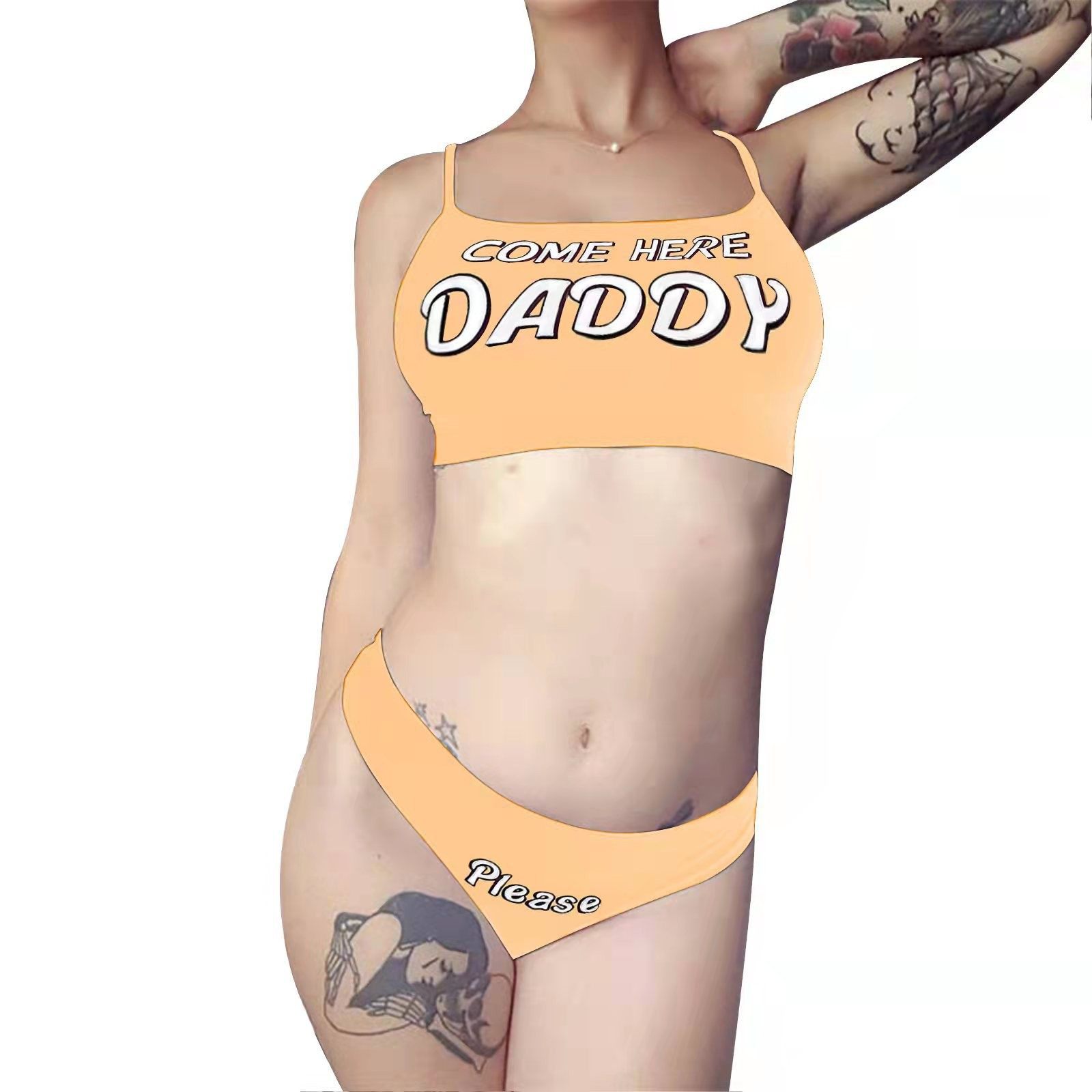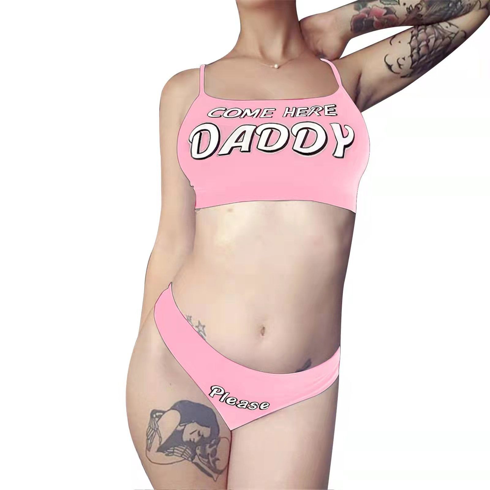 2024 Amazon European and American Women's Cross-border AliExpress ebay Fashion Letter Printing Sexy Tight Sling suit