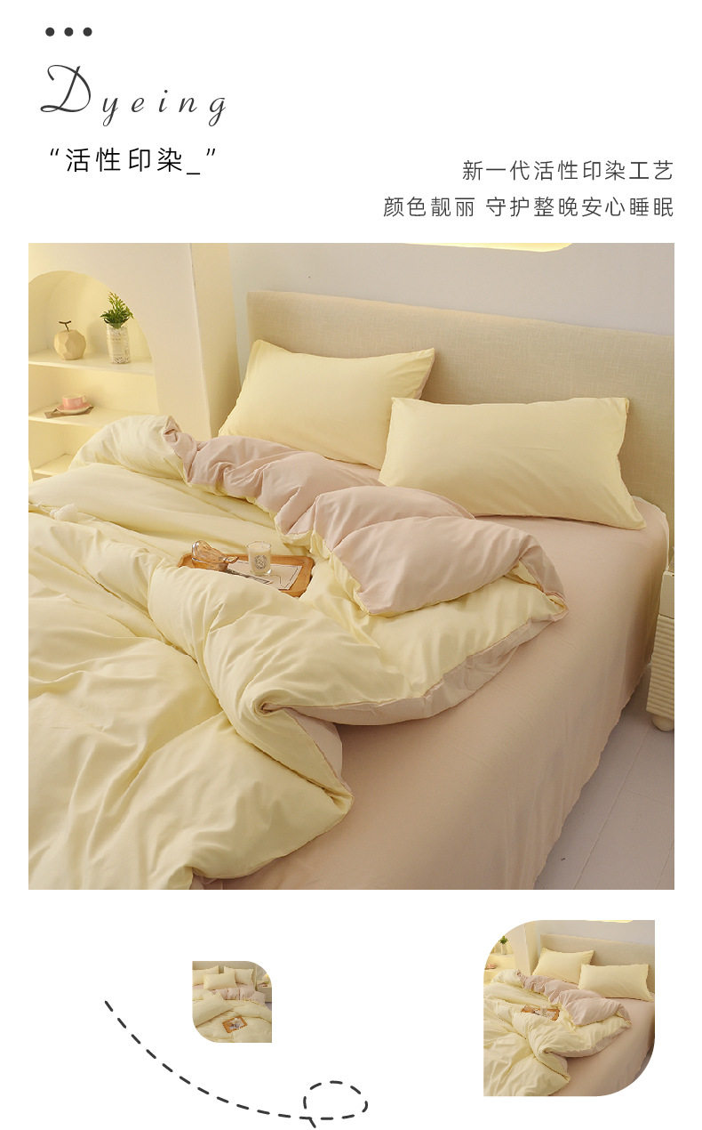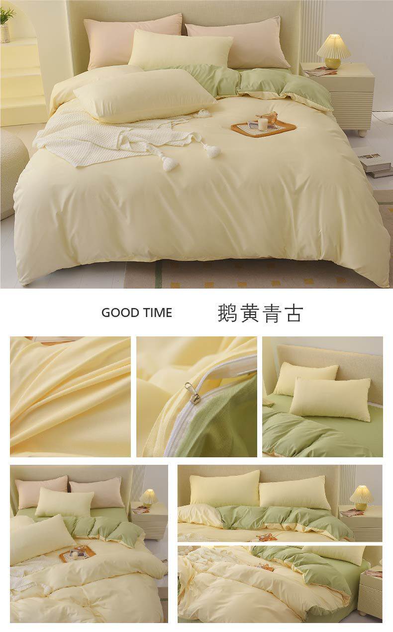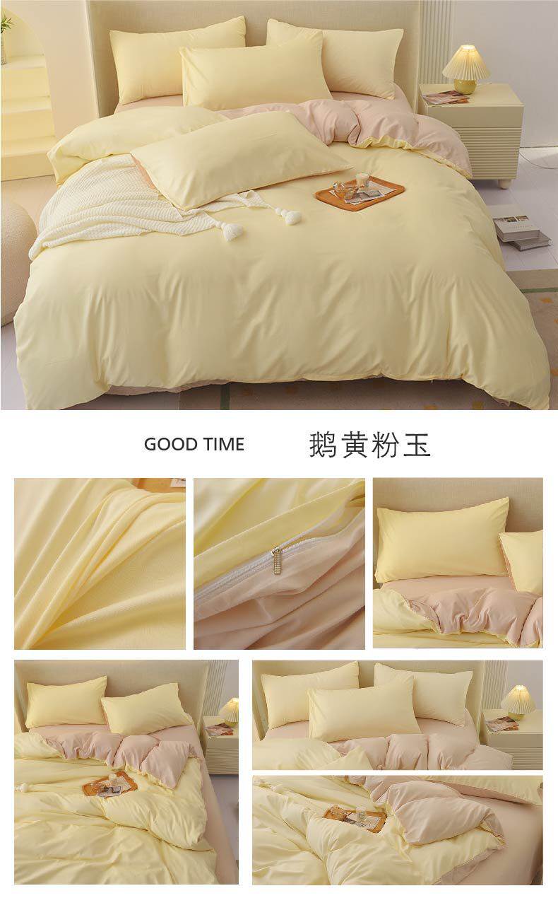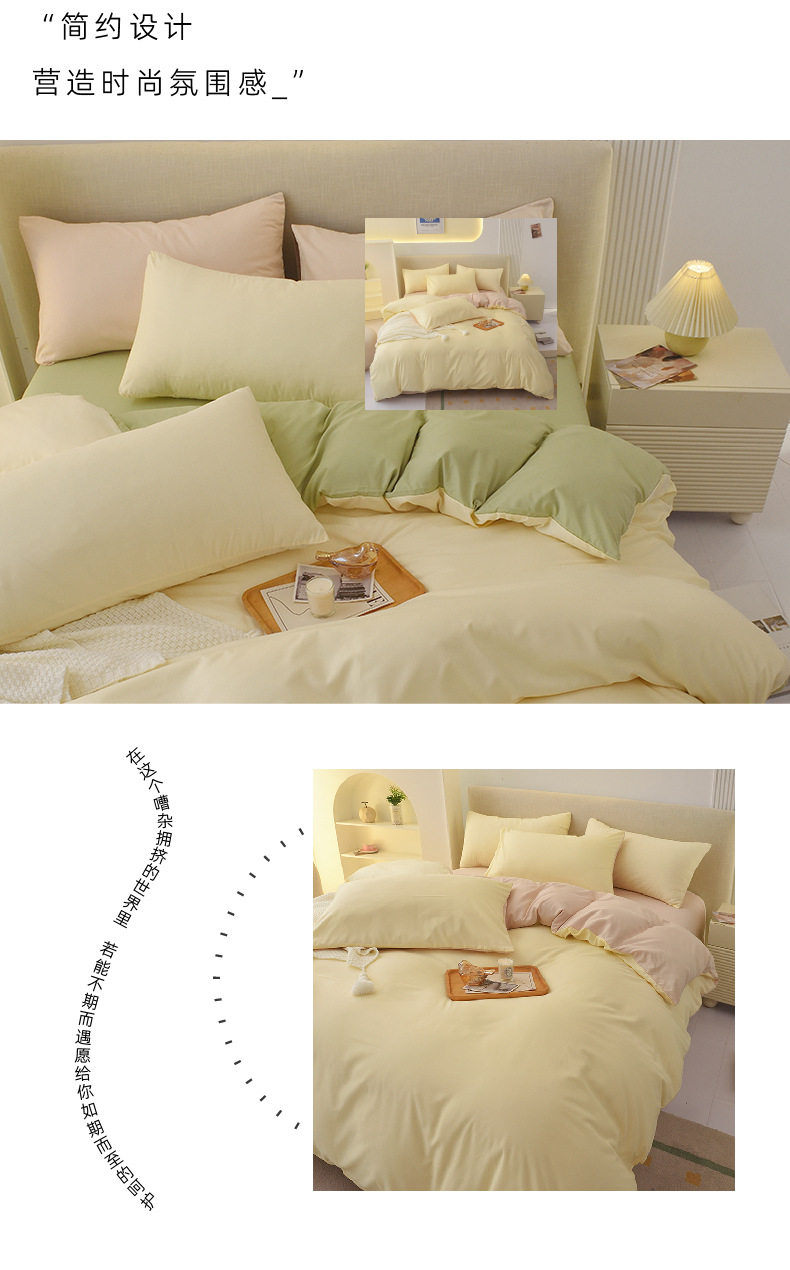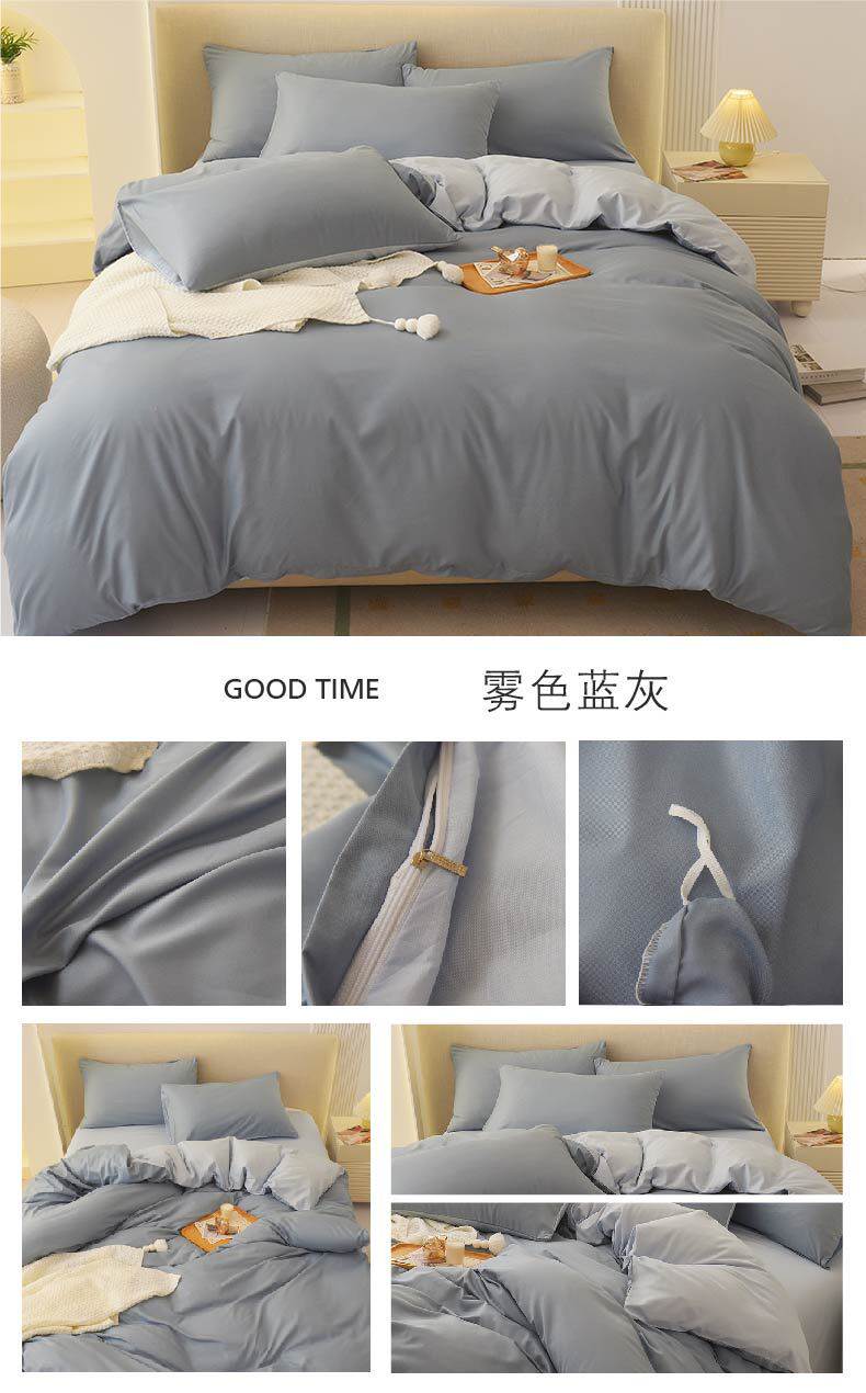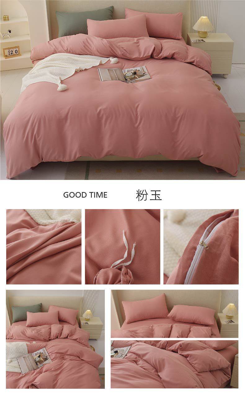 Solid Color Four-Piece Bedding Japanese Simple Scrub Bed Sheet Washed Cotton Quilt Cover Dormitory Three-Piece Set Wholesale