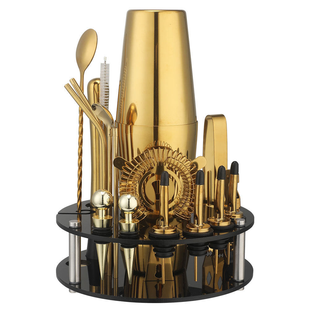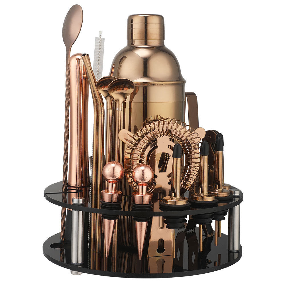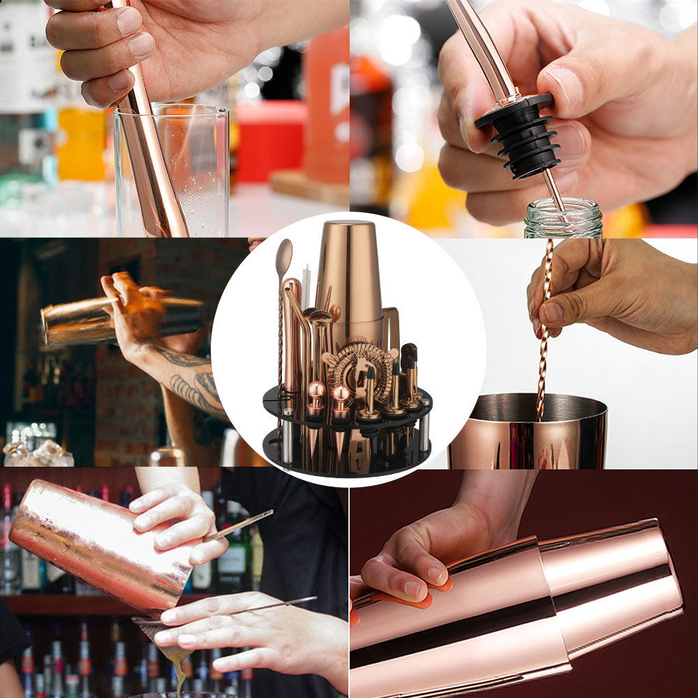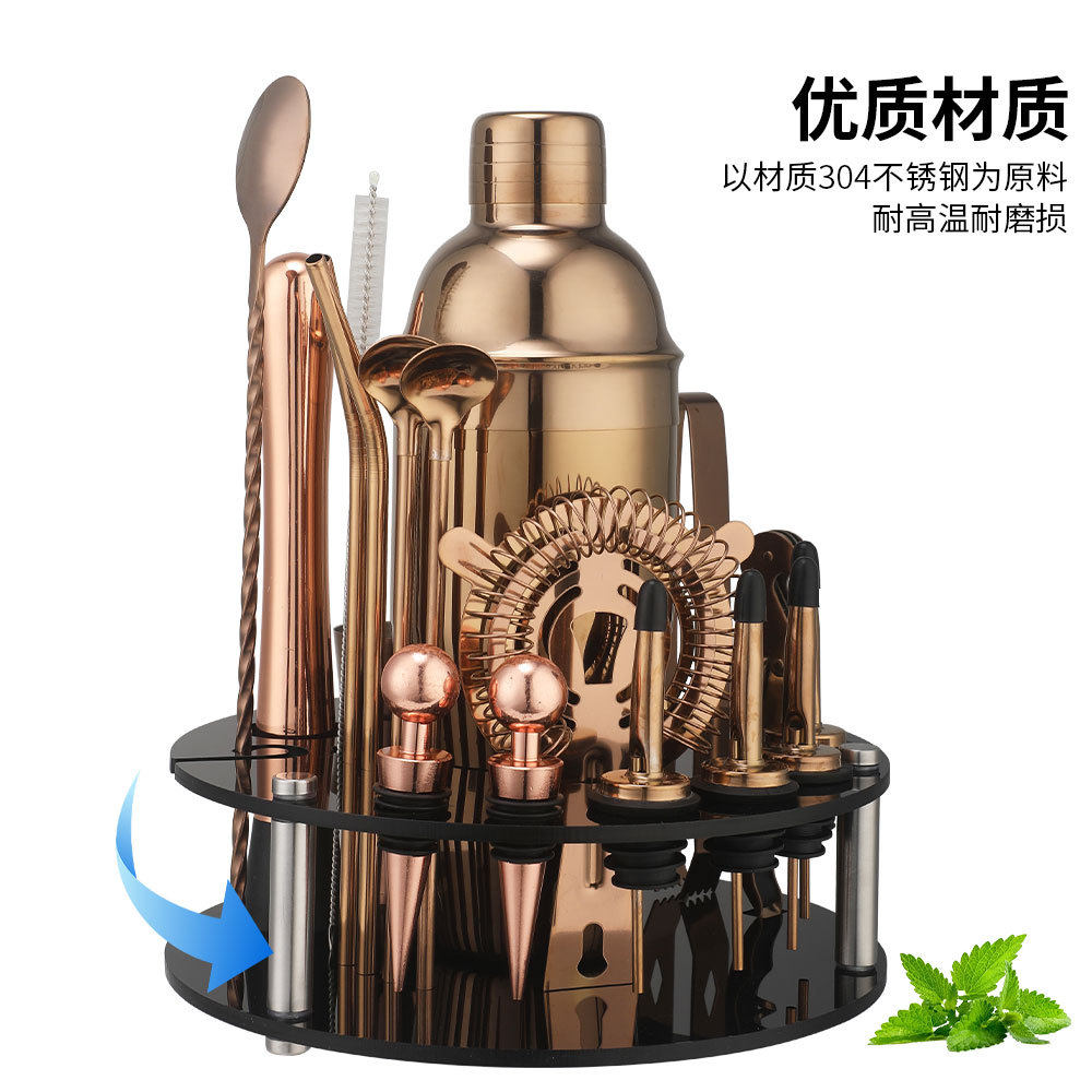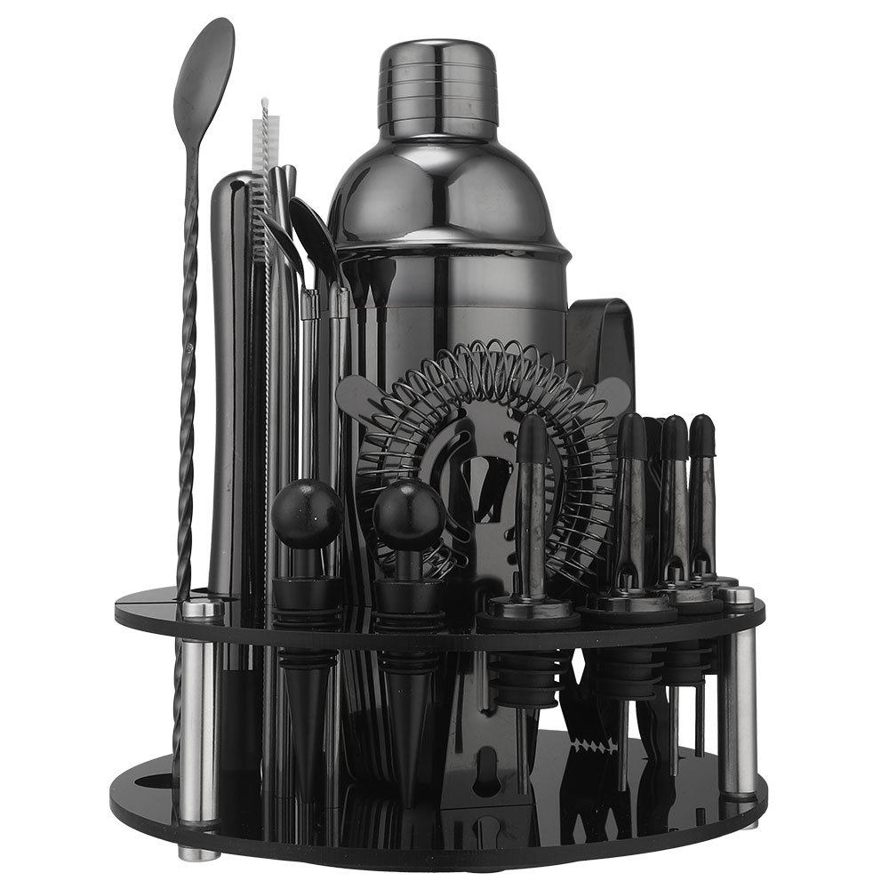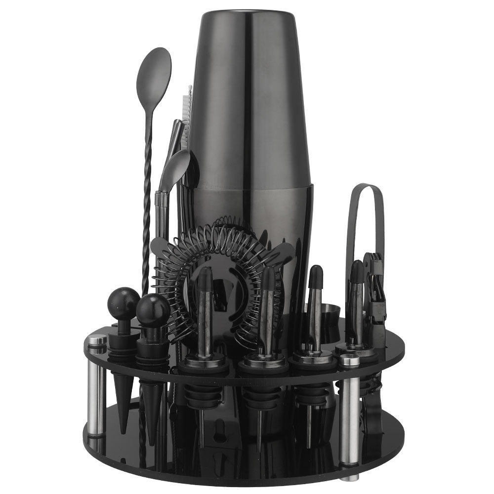 Rotating Round Black Acrylic Shaker Cup Set Anti-Fall Cocktail Shaker Bar Tool Set 20 Pieces