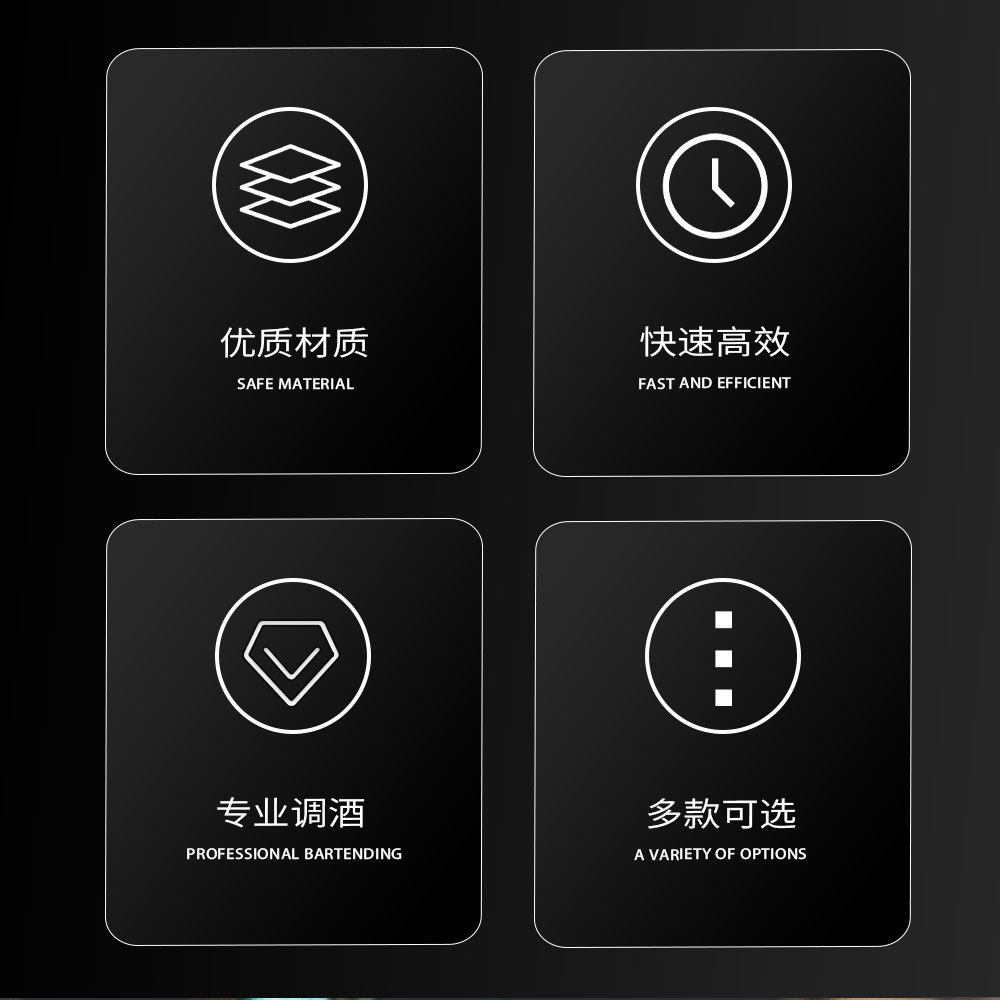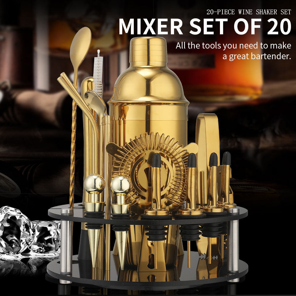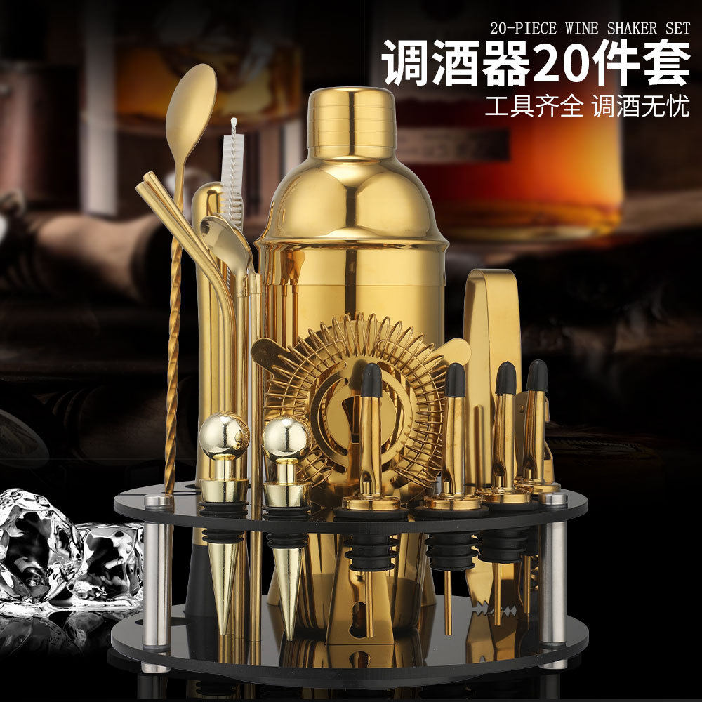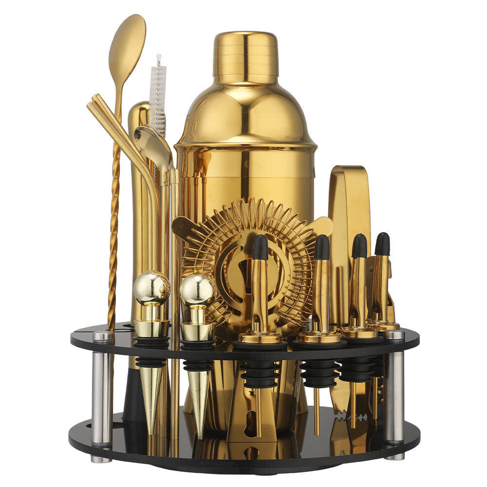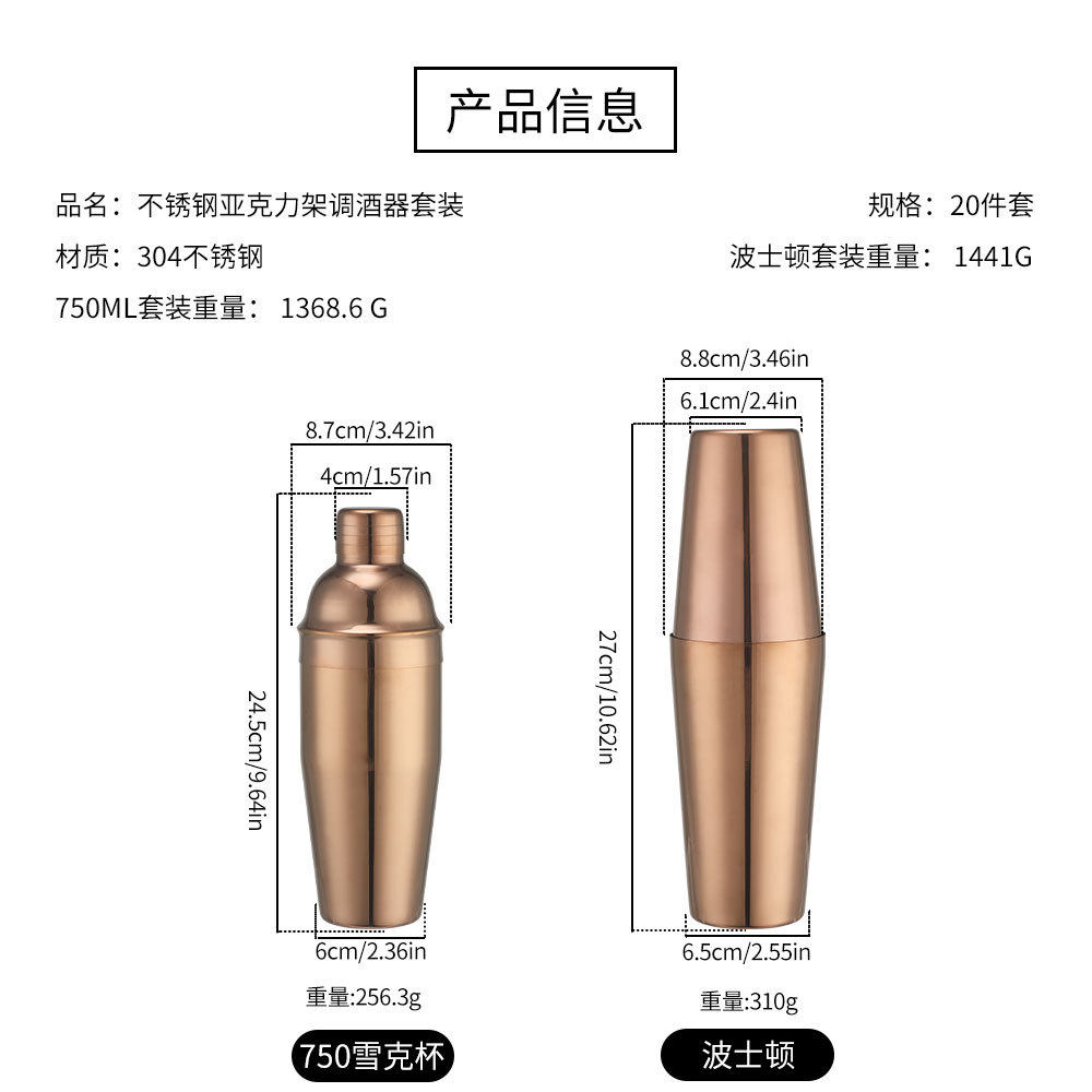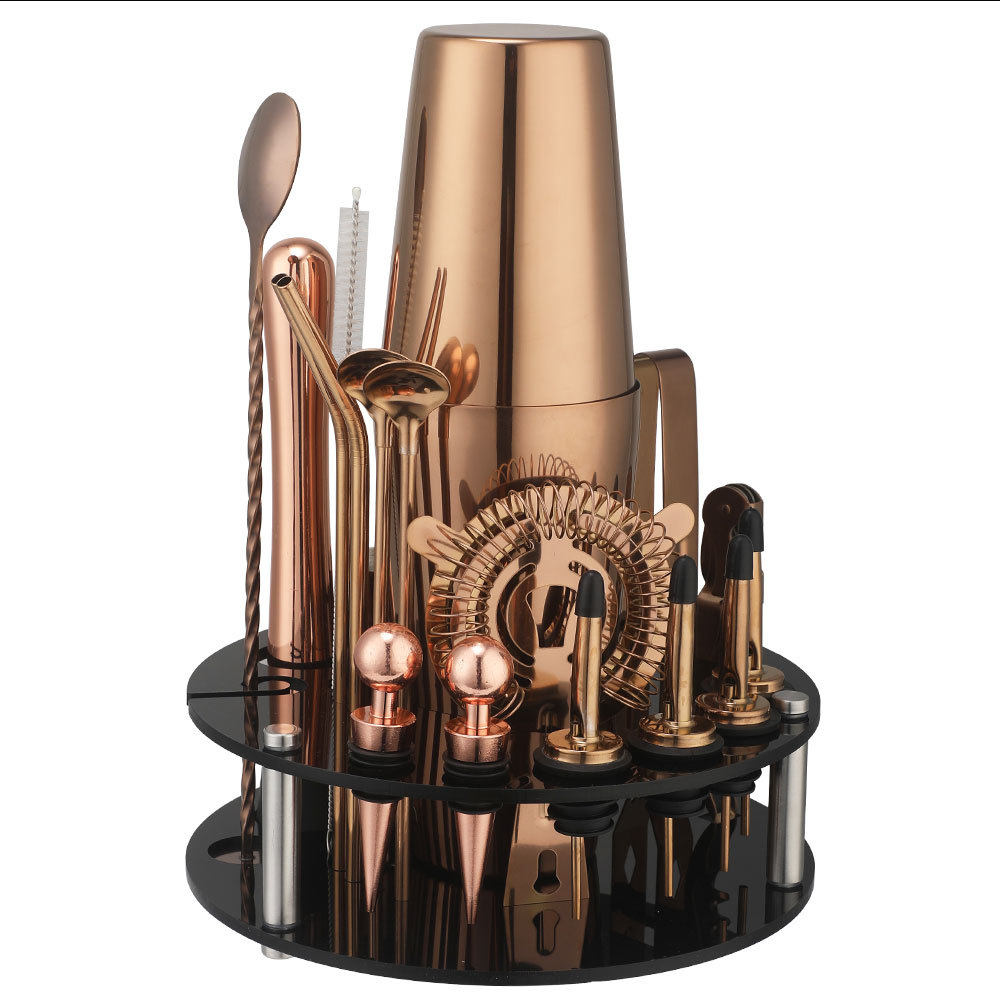 Rotating Round Black Acrylic Shaker Cup Set Anti-Fall Cocktail Shaker Bar Tool Set 20 Pieces