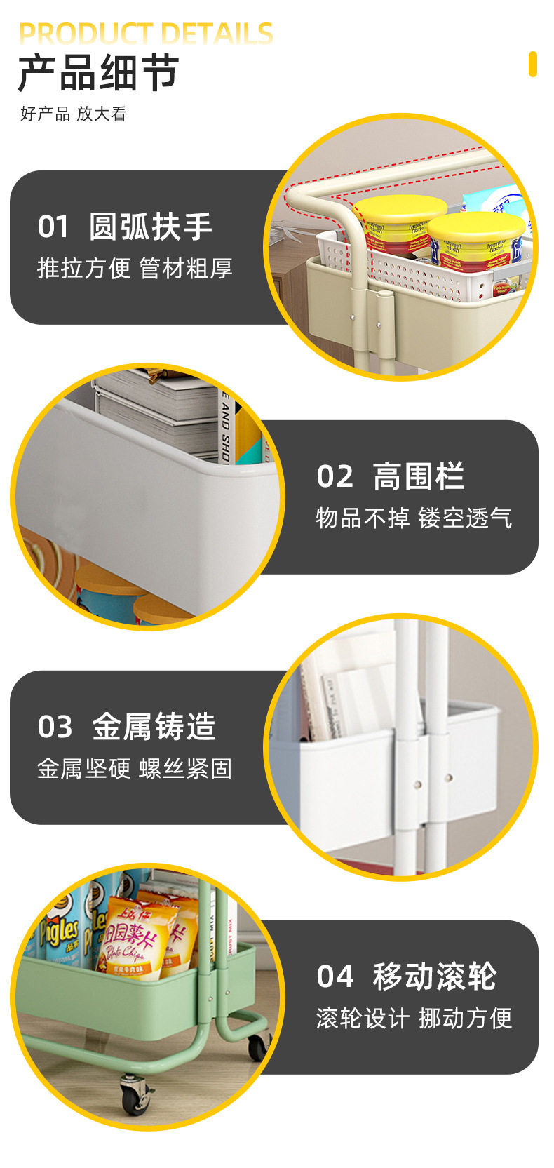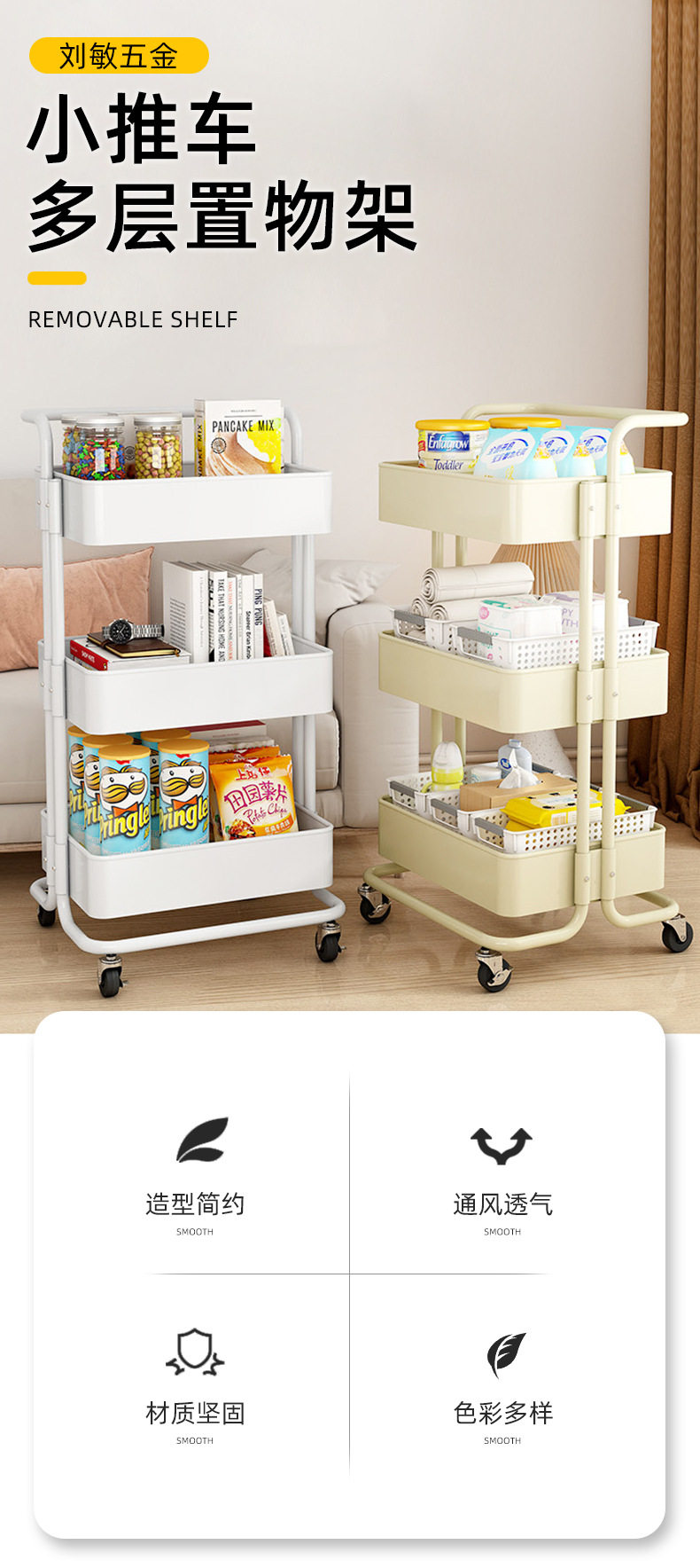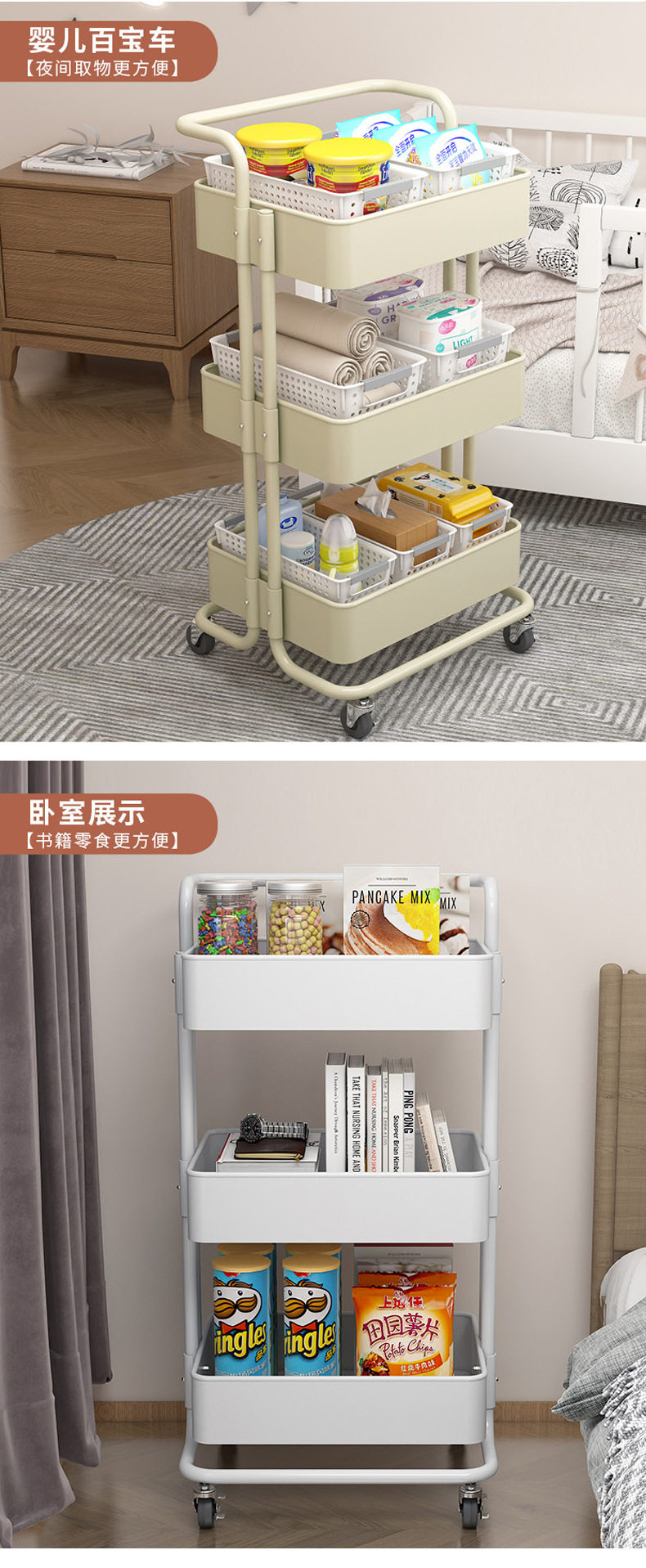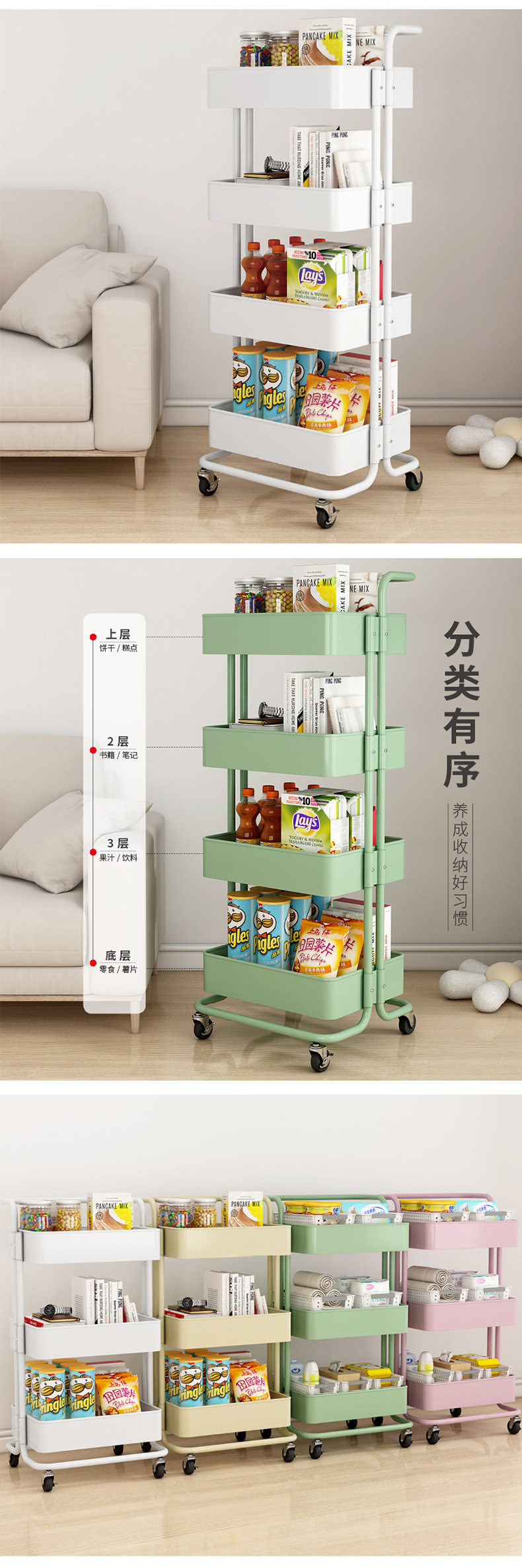 Trolley Household Floor-Standing Storage Rack Multi-Layer Storage Rack Movable Wheeled Snack Storage Rack Dormitory Rack