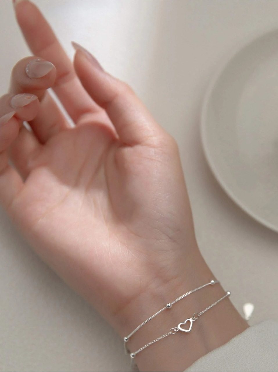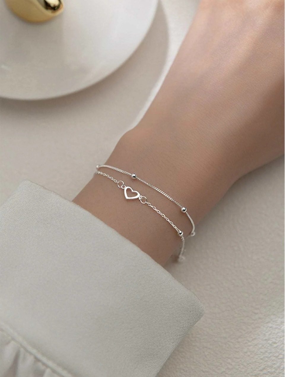 Japanese and Korean ins new simple exquisite love bracelet wholesale elegant double-layer beaded chain alloy peach heart bracelet
