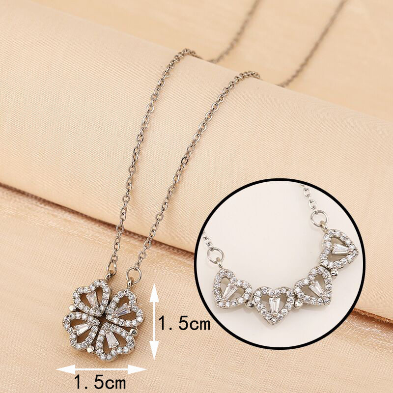 TEMU hot selling popular necklace love clover micro inlaid zircon pendant variety magnetic suction heart-shaped Girl Necklace