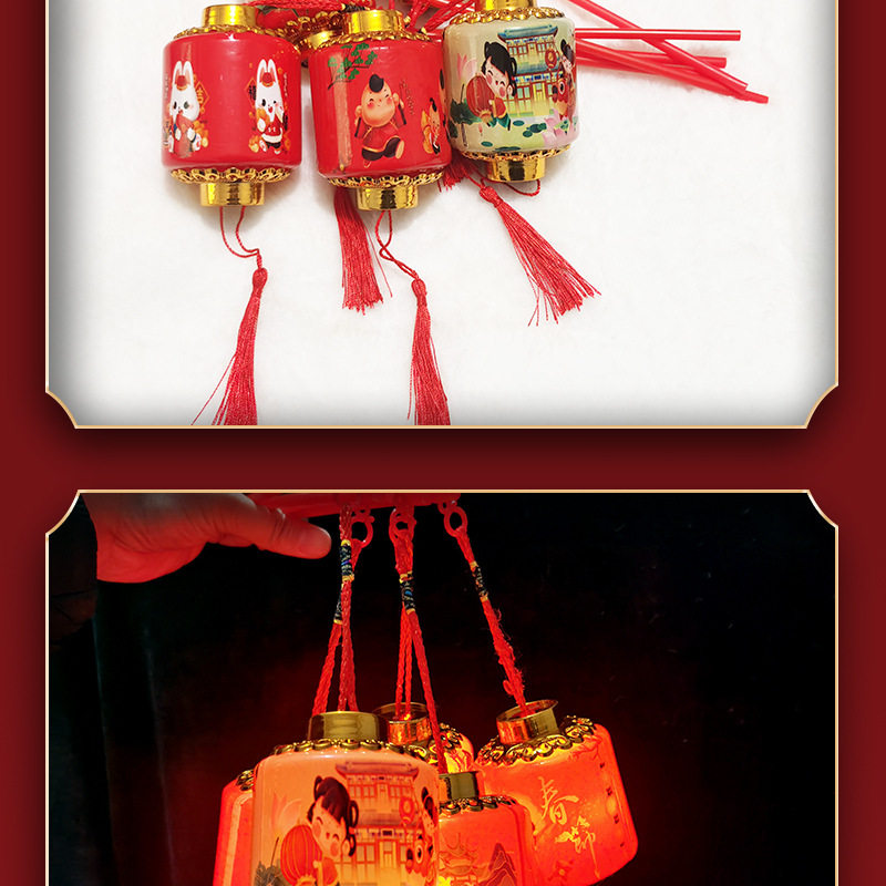 New year small lantern lucky year lantern Children DIY portable lantern light-emitting toy red lantern Lantern New Year festive