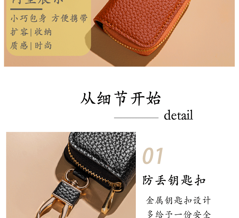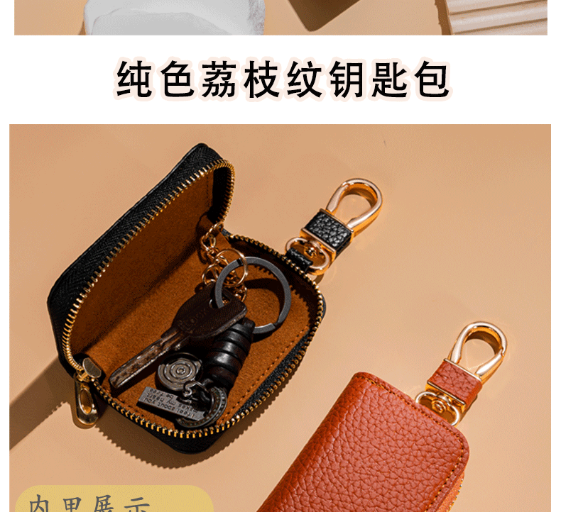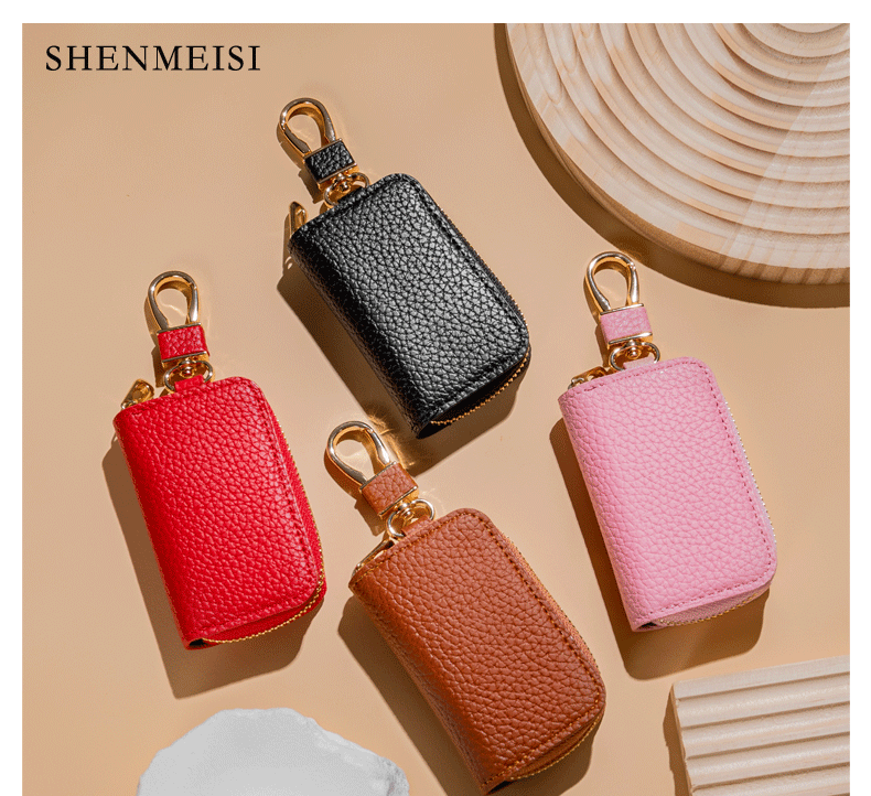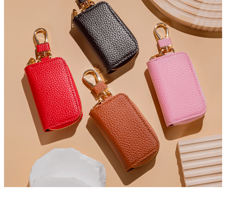 Cross-border Fashion Litchi Pattern Car Key Bag Universal Model Men's and Women's Storage Key Leather Case Mini Storage Key Bag