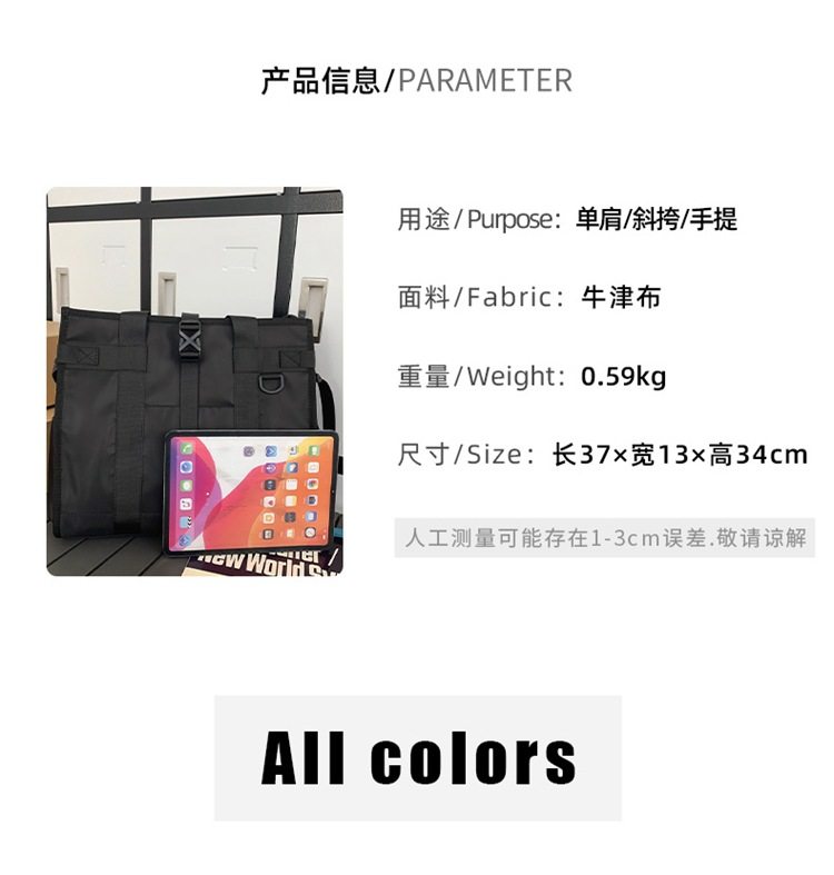 New ins trendy cool large capacity Oxford cloth tote bag men's fashion solid color shoulder bag women's travel bag