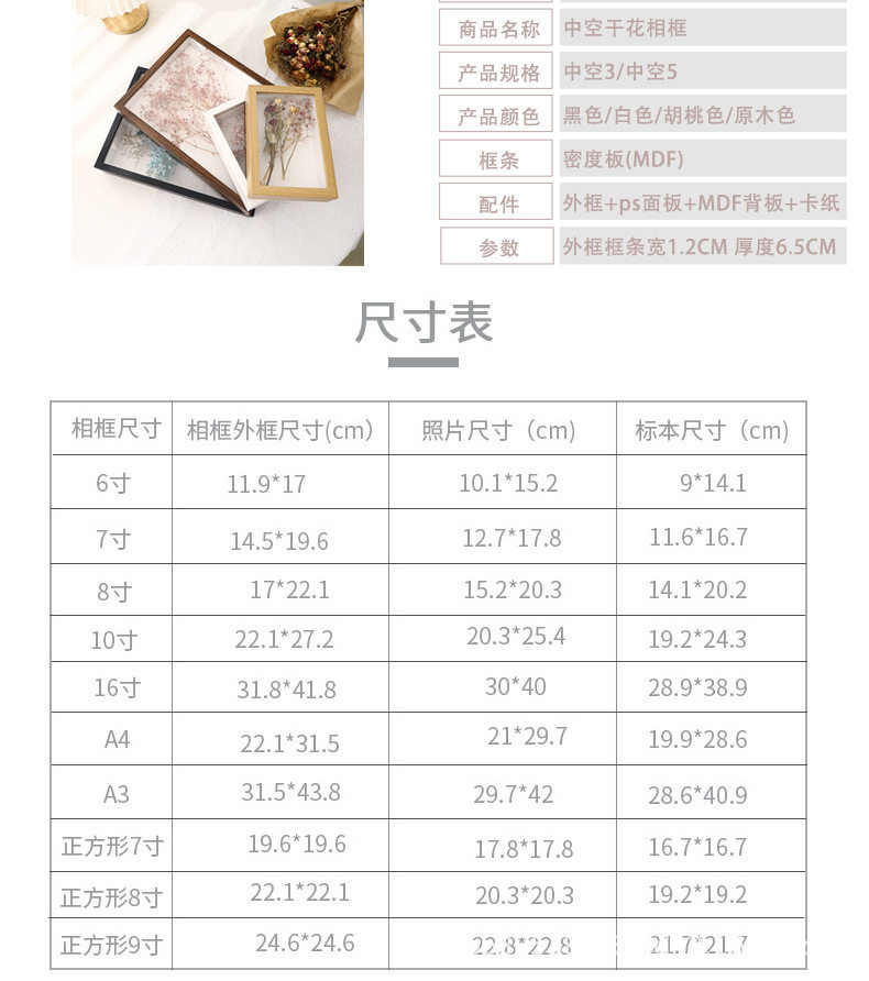 | Inner frame size | 6-inch table decoration (10 * 15cm) hollow 3cm,7-inch table decoration (12.7 * cm) hollow 3cm,8-inch table (15 * 20cm) hollow 3cm,10-inch table decoration (20 * 25cm) hollow 3cm,A4 table (21 * cm) hollow 3cm,16-inch table (30 * 40cm) hollow 3cm,6-inch table decoration (10 * 15cm) hollow 5cm,7-inch table decoration (12.7 * cm) hollow 5cm,8-inch table decoration (15 * 20cm) hollow 5cm,10-inch table decoration (20 * 25cm) hollow 5cm,A4 table (21 * cm) hollow 5cm,16-inch table decoration (30 * 40cm) hollow 5cm |