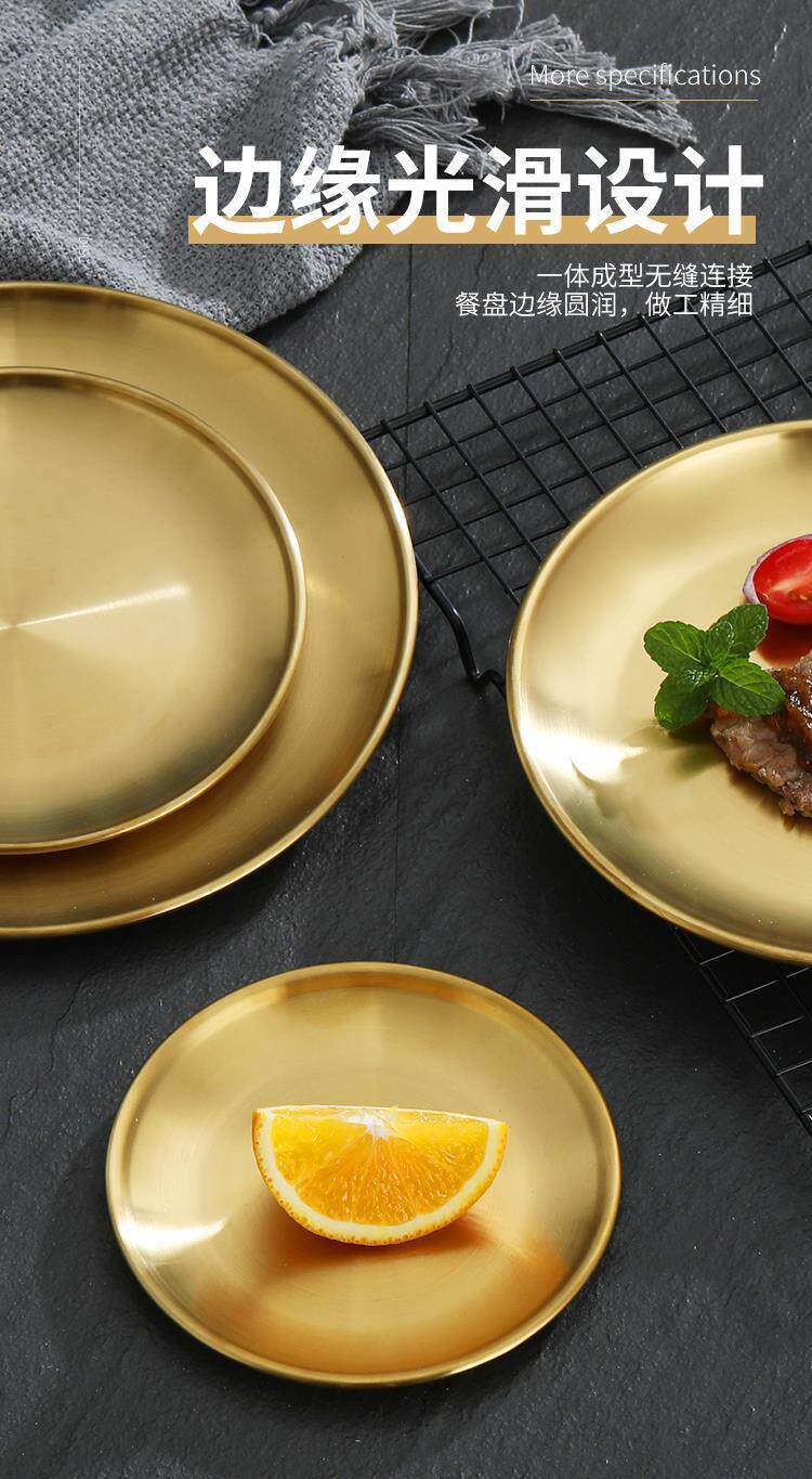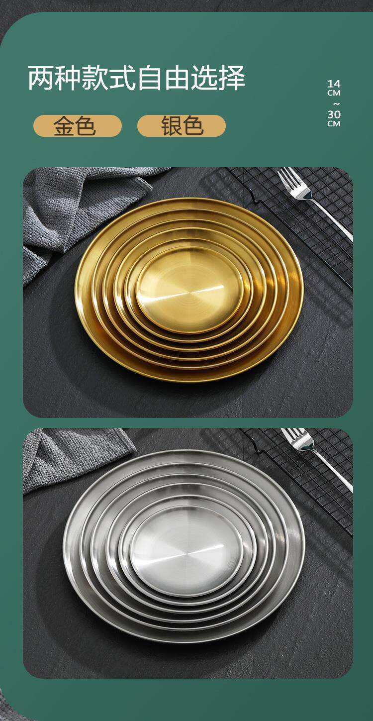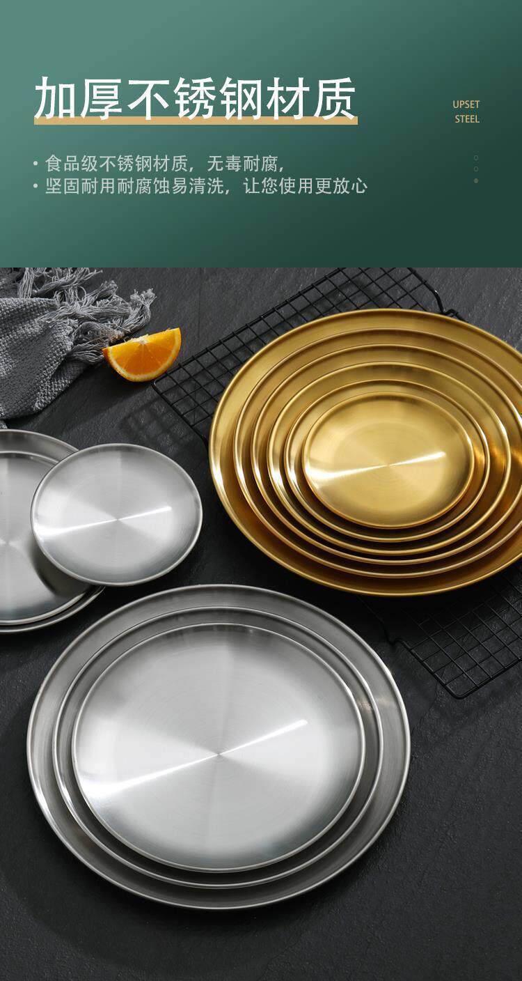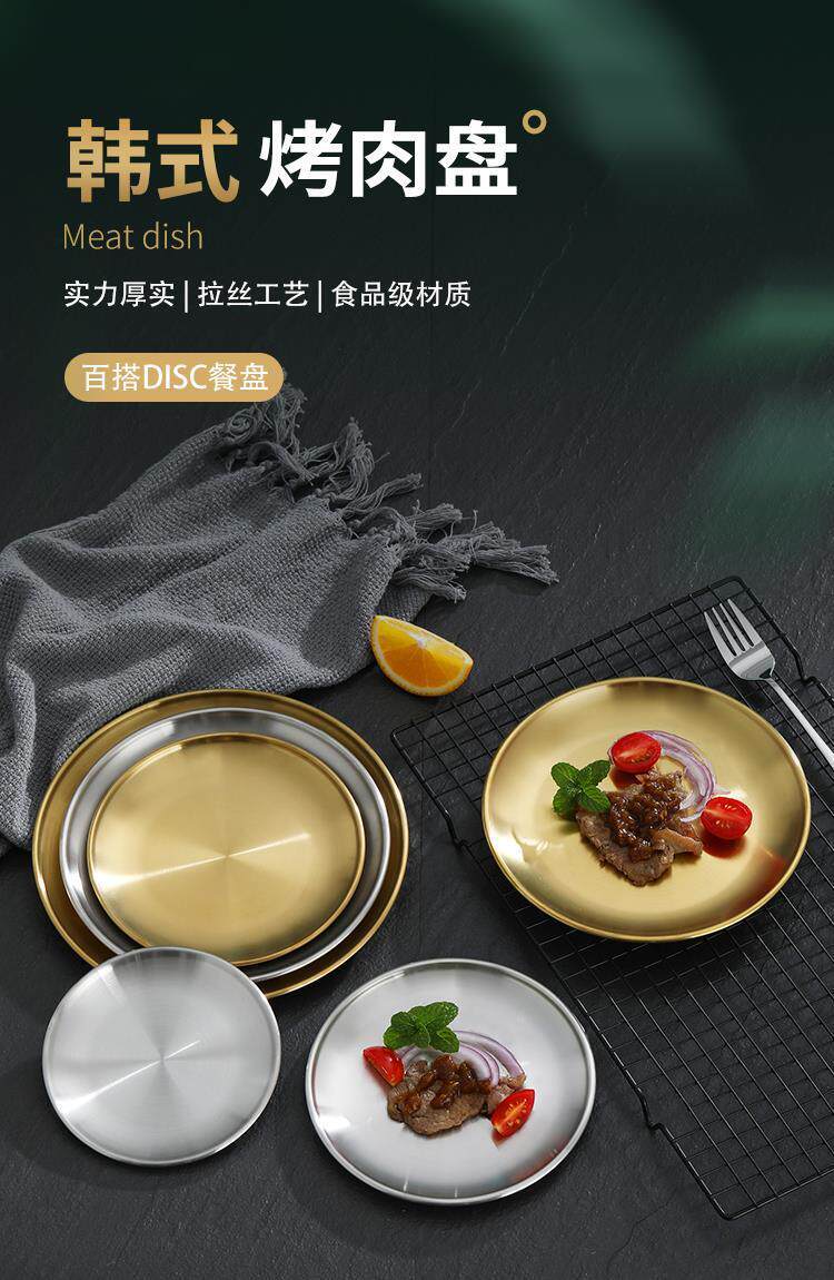 [Factory direct sales] Korean stainless steel thickened disc Golden barbecue plate fruit cake plate barbecue plate