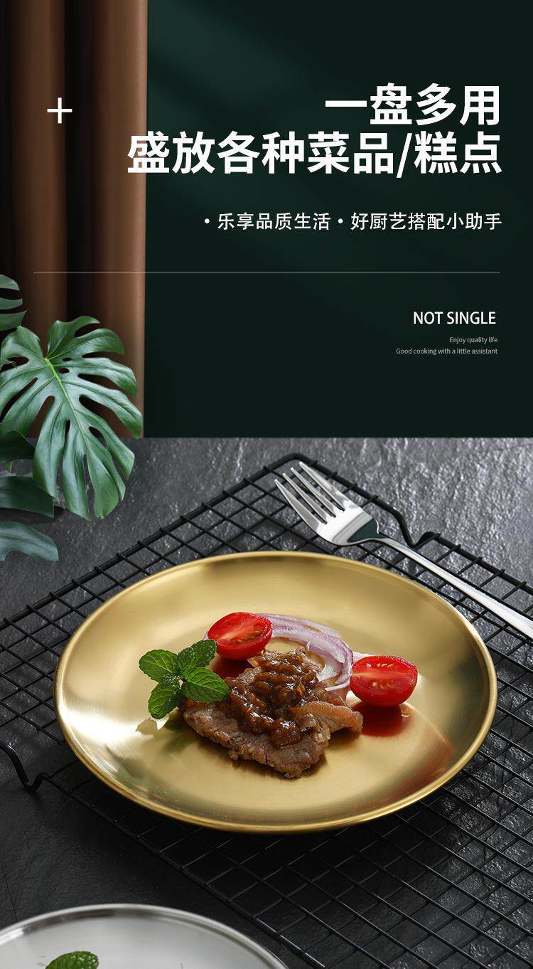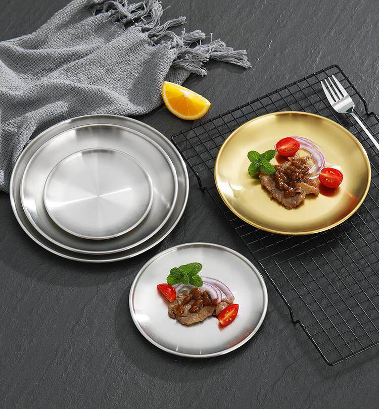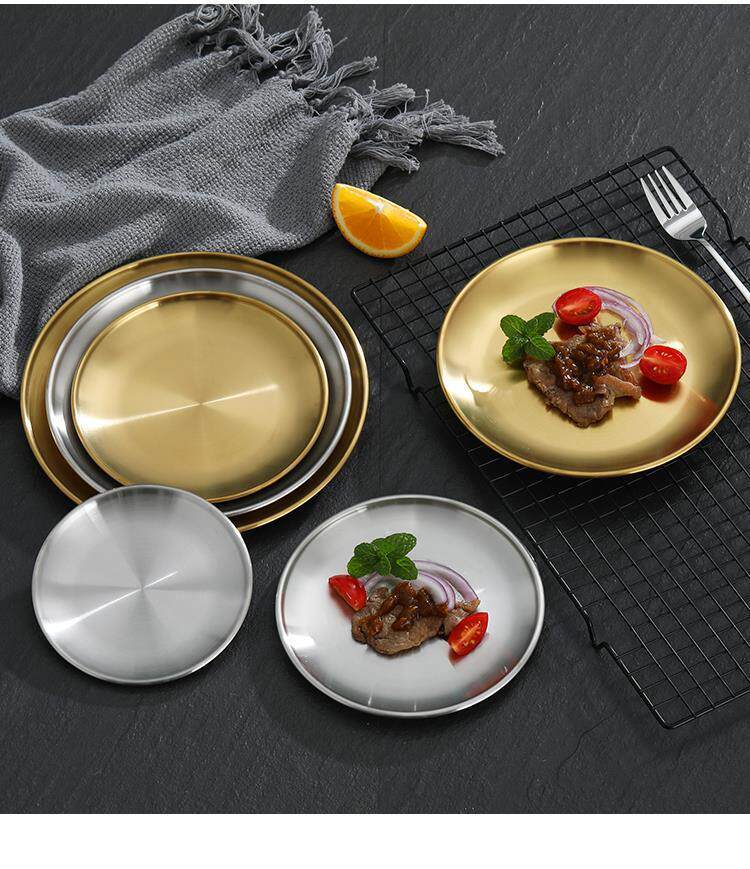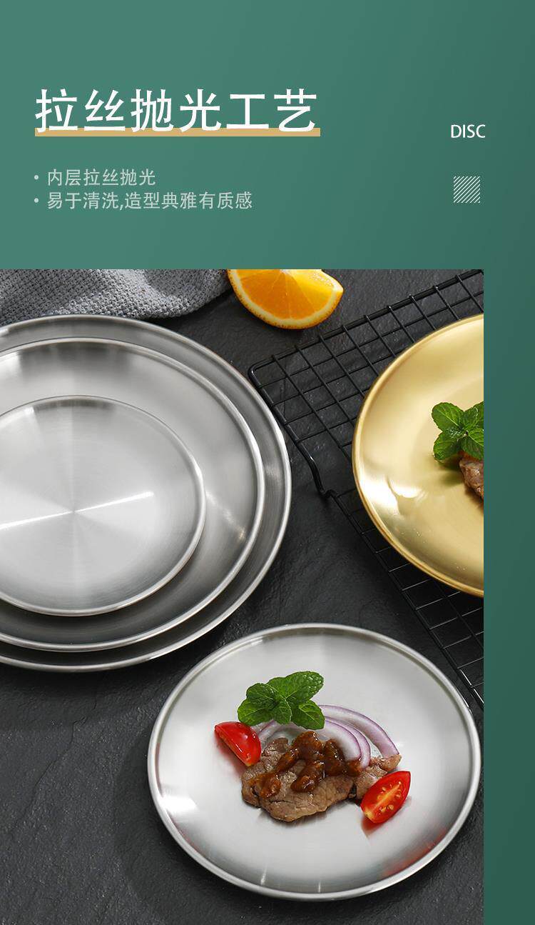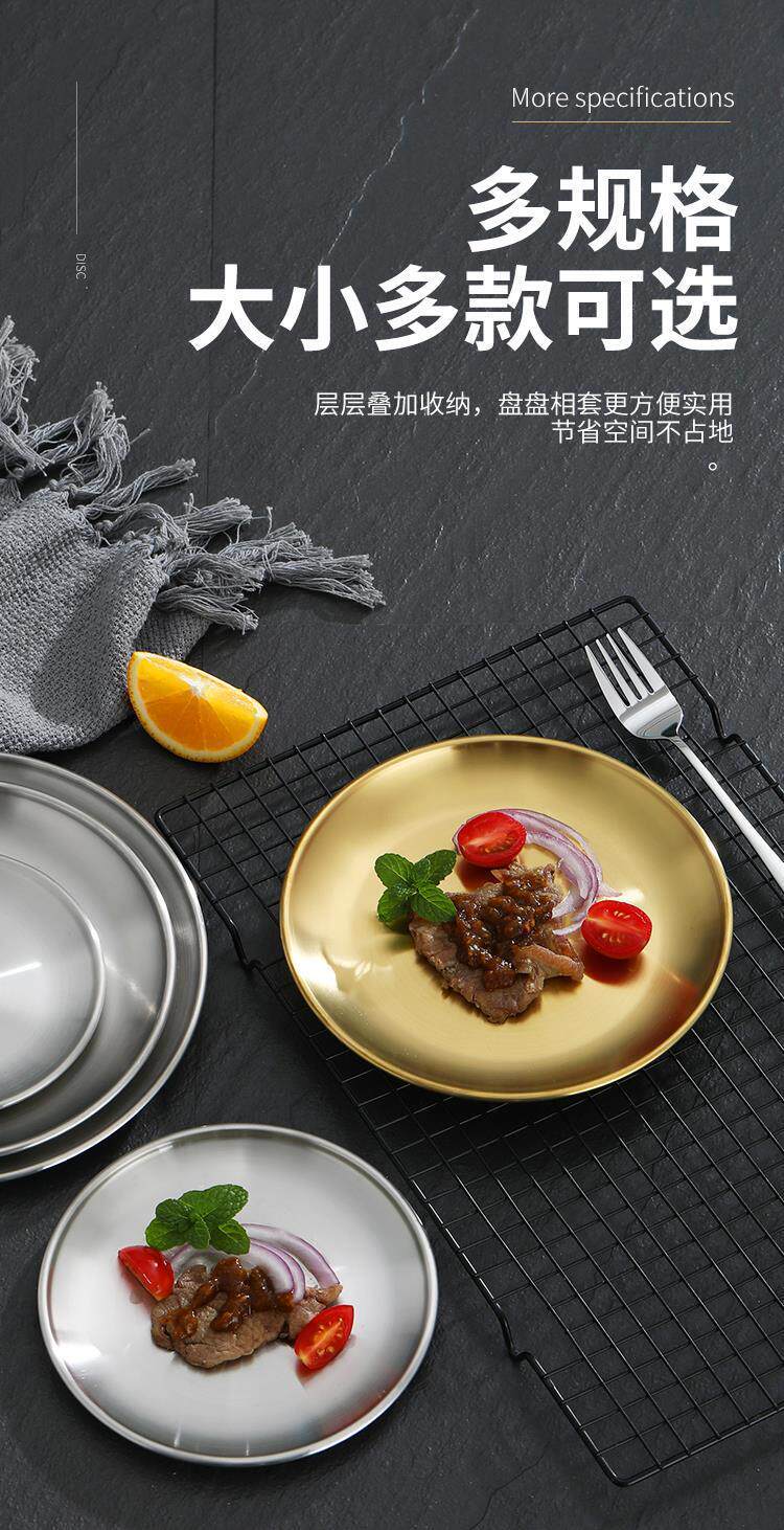 [Factory direct sales] Korean stainless steel thickened disc Golden barbecue plate fruit cake plate barbecue plate