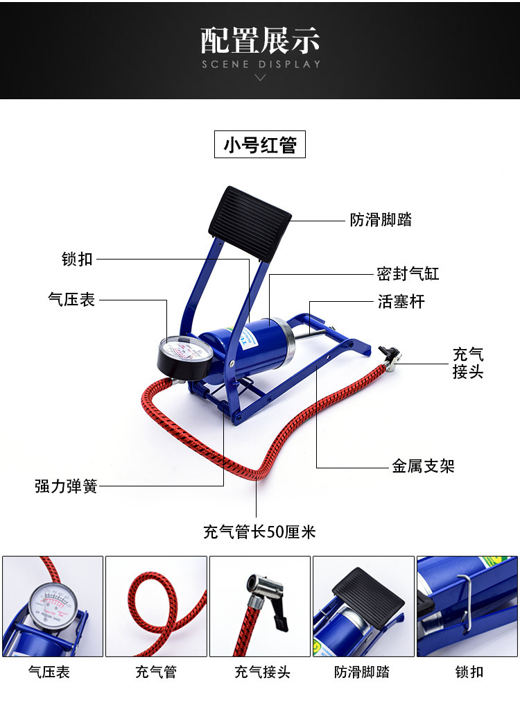 Hercules pedal pump bicycle motorcycle high pressure double tube air pump portable car air pump