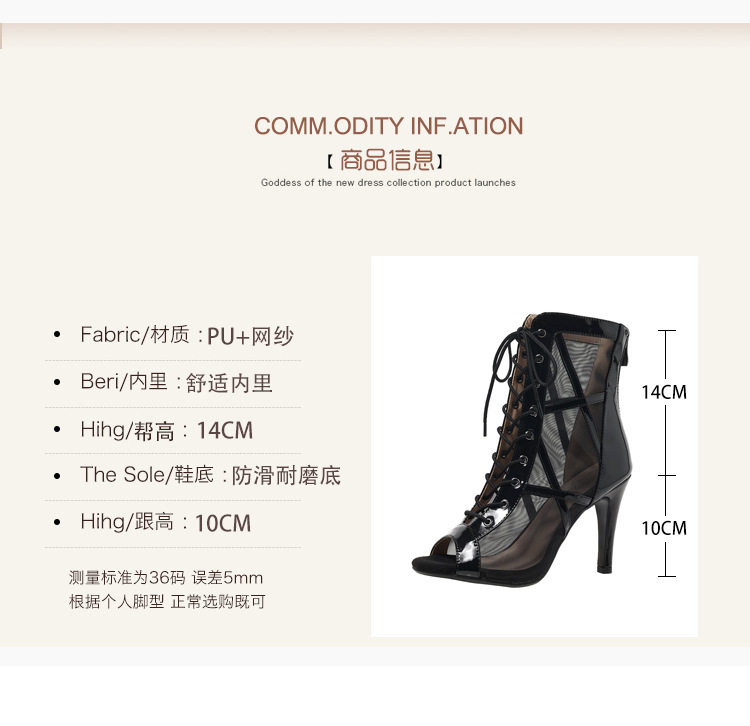 Foreign trade women's sandals front lace-up peep toe sandals women's summer stiletto heel ultra-high heel hollow-out ankle boots jazz dancing sandals