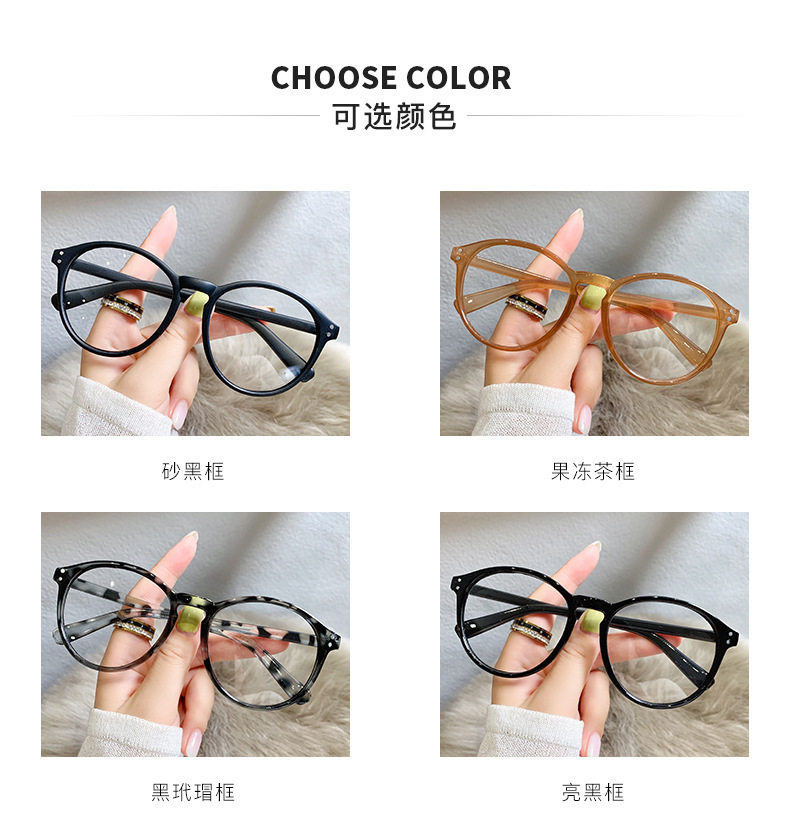 New round anti-blue light glasses frame online celebrity Korean retro plain glasses men and women same myopia finished glasses wholesale