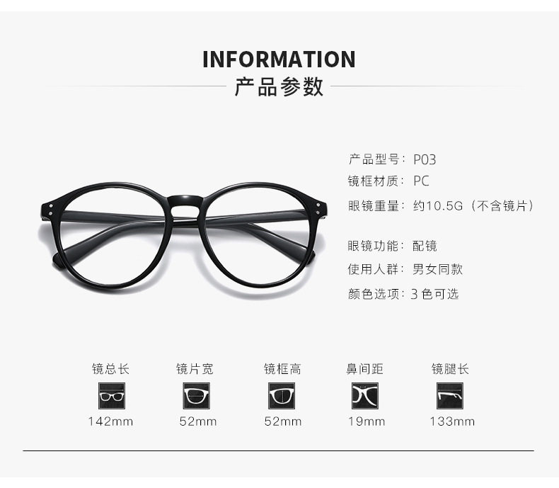 | Lens color | [0 degrees] Anti-blue light glasses,Myopia 50 degrees,Myopia 100 degrees,Myopia 150 degrees,Myopia 200 degrees,Myopia 250 degrees,Myopia 300 degrees,Myopia 350 degrees,Myopia 400 degrees,Spectacle frame (without liner) |