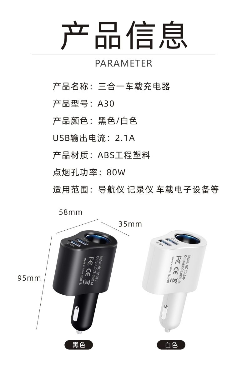 | Color | One-to-three USB charger [black]],One-to-three USB charger [white]] |